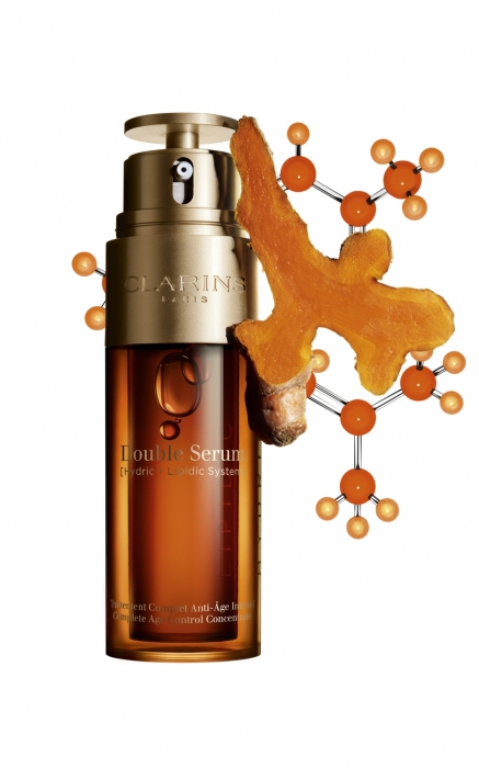 Они поделились гордостью: недавнее открытие специалистов Лабораторий Clarins, сделанное совместно с командой клеточного биолога профессора Ива Пумэ из бельгийского Университете Намюра, удостоилось научной публикации. Ученые обнаружили прямую связь между процессом старения кожи и липидными рафтами — ее клетками, которые ловят и распознают сигналы внешнего мира. Со временем, конечно, всё с большими помехами. Перенастроить этот «приемник» берется молекула турмерона, извлеченная из экстракта куркумы. Кроме нее, в состав новой Double Serum вошли еще двадцать растительных экстрактов — каланхоэ, киноа, солероса, киви, ягод годжи, эдельвейса, зеленого банана и многих других.