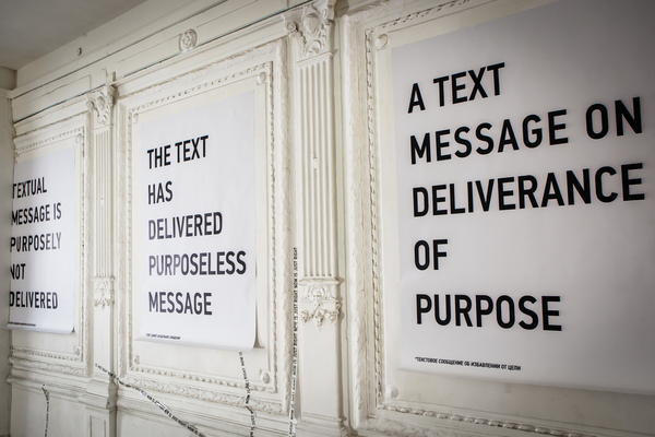 Серия плакатов проверяет на прочность известную формулировку Маршалла Маклюена «Medium is the Message»: на каждом постере слова исходной фразы («The purpose of text is to deliver message») переставляются, в результате полностью искажая суть послания.