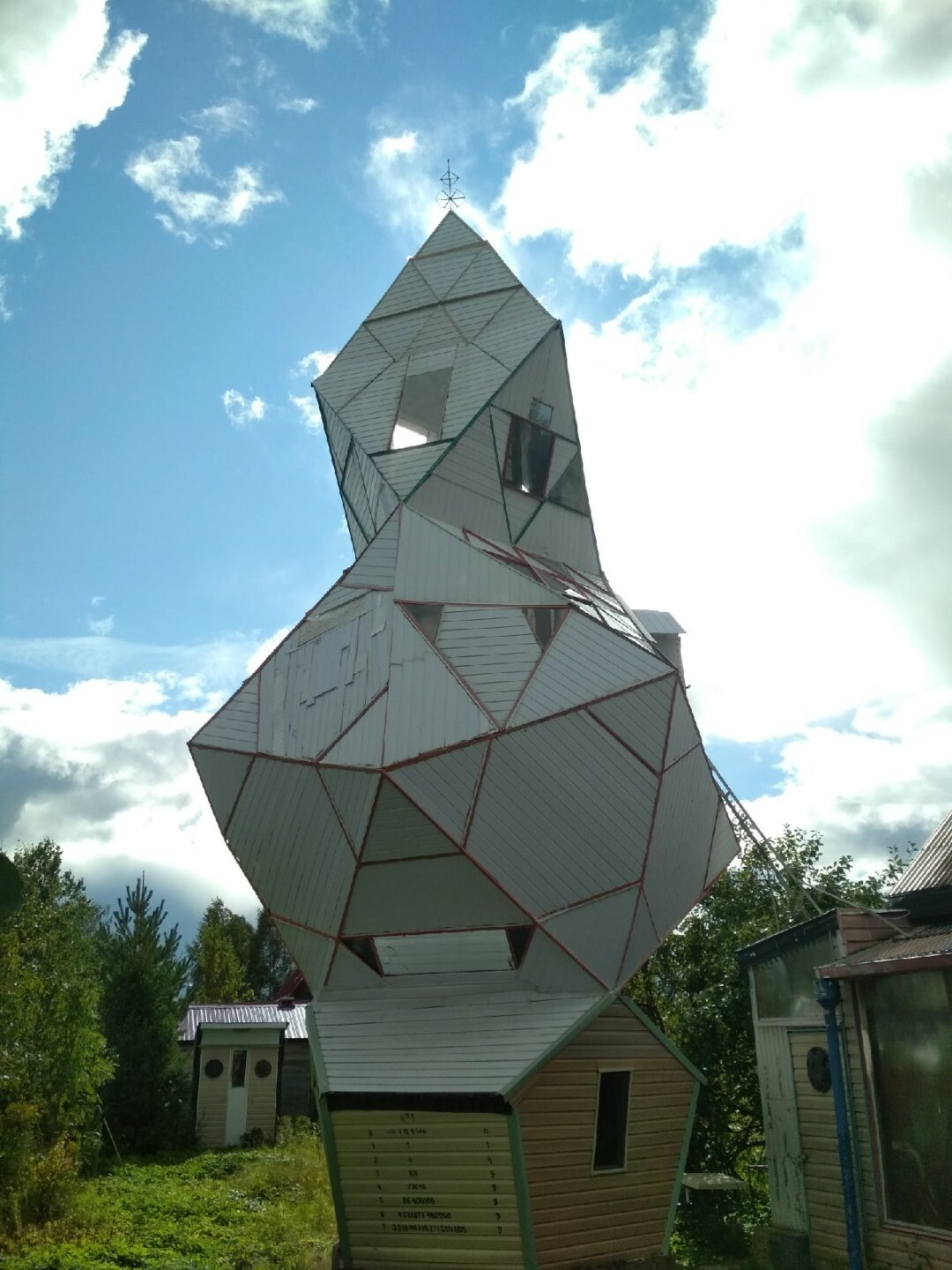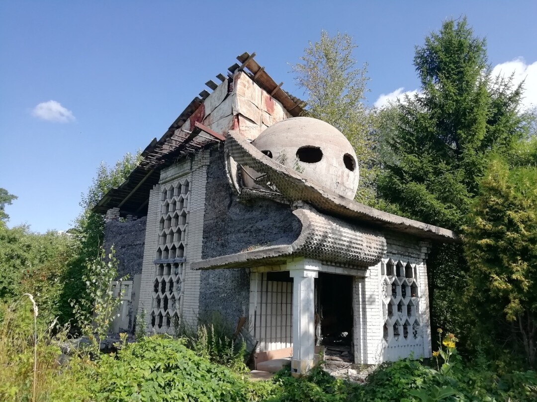 Во времена начала покорения космоса архитектор-самоучка Олег Архипов решил сделать на своей даче музей космонавтики. Грандиозная идея столкнулась с реальностью: денег на ее воплощение не хватало. Работа продолжалась десятилетия. На стройке приходилось проявлять чудеса находчивости: в ход шли различный мусор, строительные отходы и прочие замысловатые вещи. В 1990-е в недостроенном строении случился пожар, а после — оно пришло в запустение. Осенью-зимой прошлого года обвалилась крыша вместе с самым узнаваемым элементом — бетонным шаром.