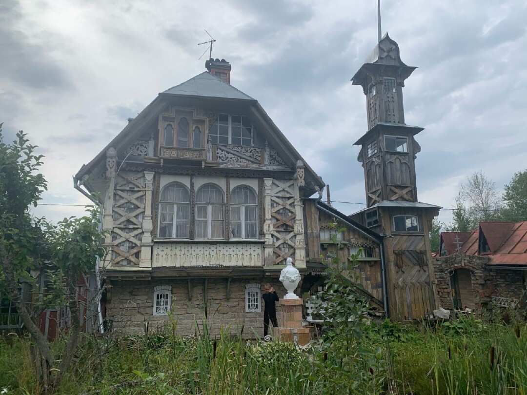 Владелец дома и архитектор-самоучка Юрий Климашевский взялся за стройку в 1980-е. К задаче он подошел в духе апсайклинга. В качестве материала использовал руины дореволюционных усадеб, которых в окрестностях дачи Юрия и Ораниенбаума очень много. Юрий считает, таким образом он спас исторические элементы от полного уничтожения.