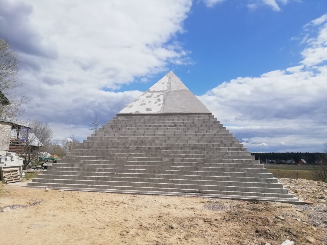 Виктория и Андрей Вахрушевы обожают путешествовать по Египту. Иногда за год удавалось совершать до шести поездок в эту страну. Каждый раз они активно изучают ее богатое культурное наследие. Любовь к древностям побудила их на своем дачном участке в деревне Истинка построить пирамиду Хеопса. Это почти точная копия, уменьшенная в 19 раз и выполненная из полистиролбетона. Высота и глубина конструкции составляет 9 метров, а весит она 500 тонн. Сама пирамида создана по правилам древнеегипетского строительства, с ориентацией на части света. Авторы верят в чудодейственную силу созданного объекта.