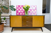 Ремонт провели в рекордно короткие сроки — около двух месяцев, а интерьер магазина Сергей Бондарев и Алексей Анисимов придумали самостоятельно — мебель нашли в антикварных и комиссионных магазинах Финляндии, а на велосипеде когда-то катался сам дизайнер. Коллажи с рыжеволосой девушкой по периметру магазина, самодельный Ротко и художественные панно на стенах также сделаны Сергеем.