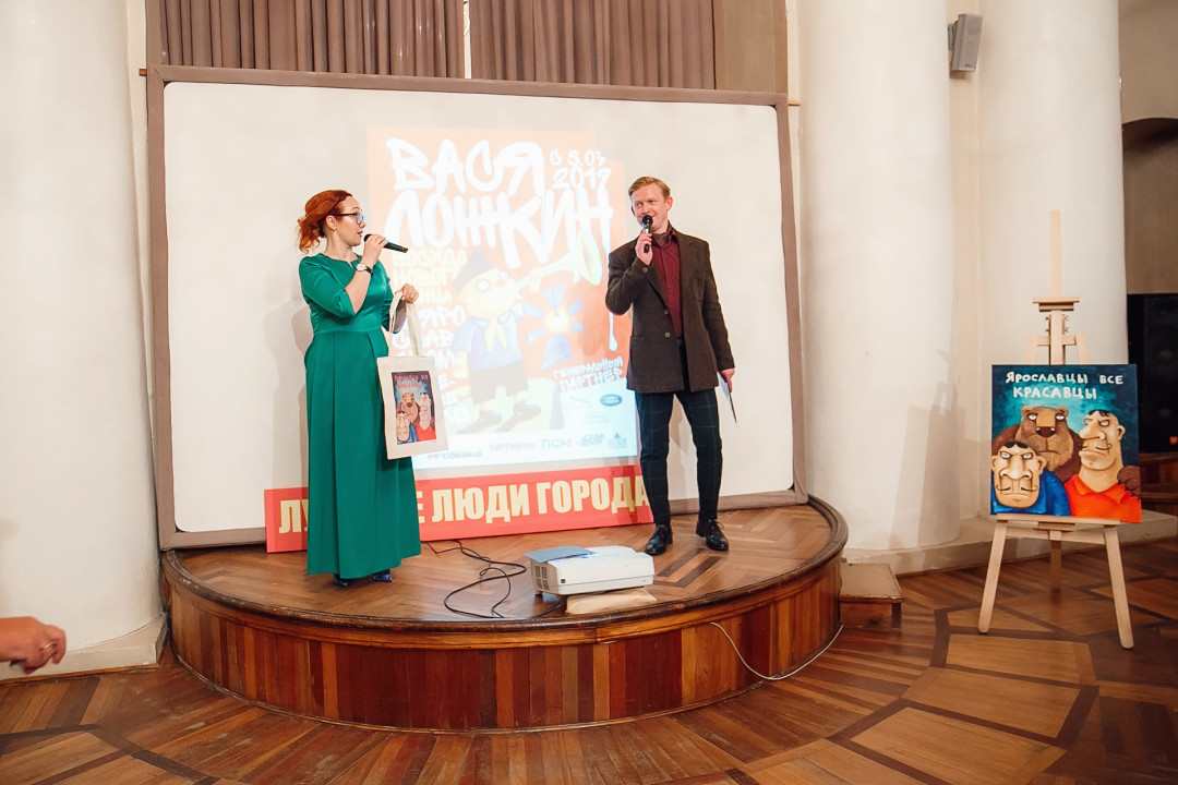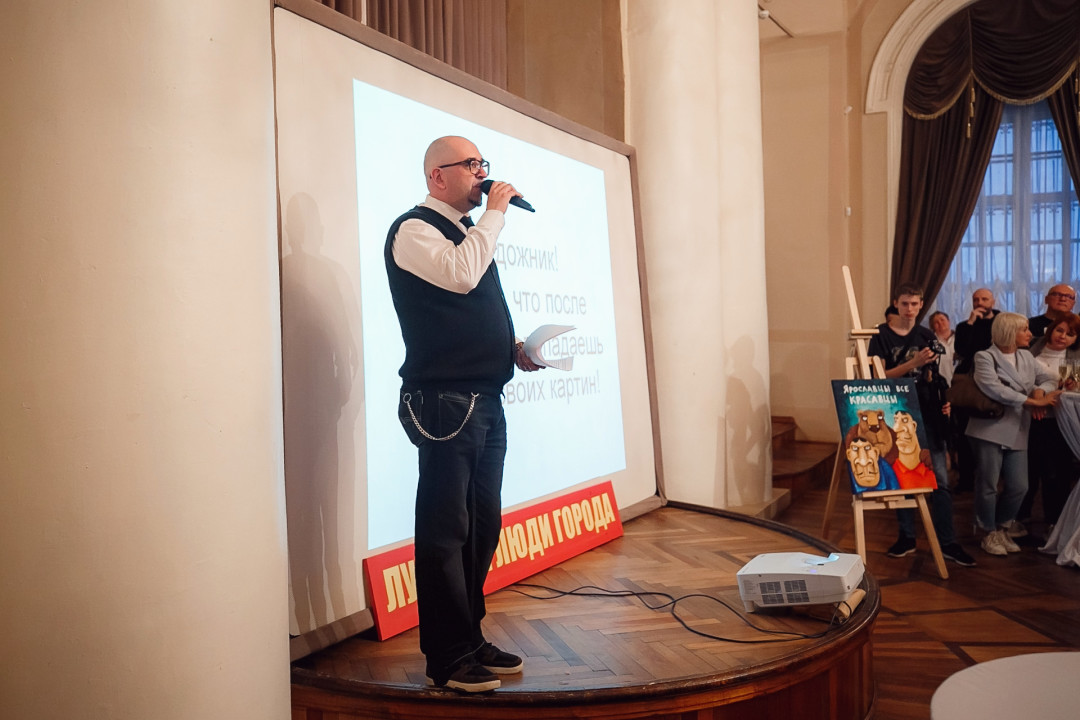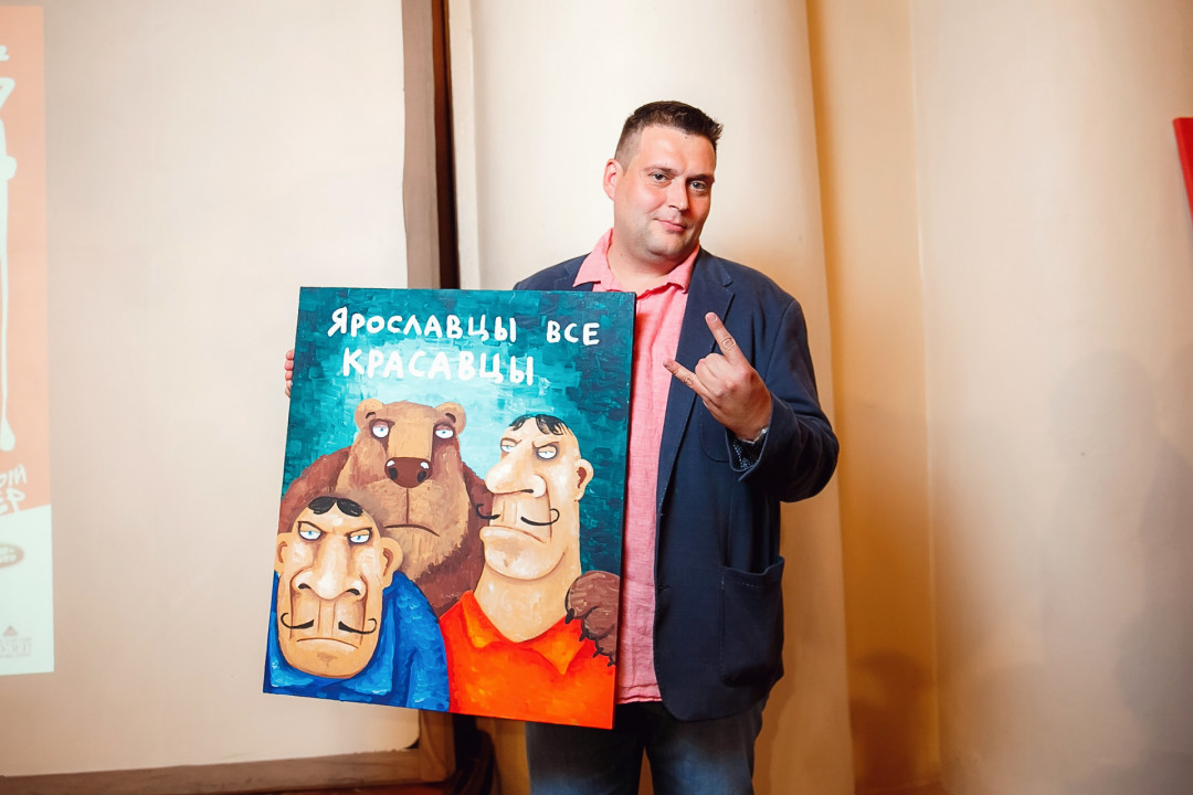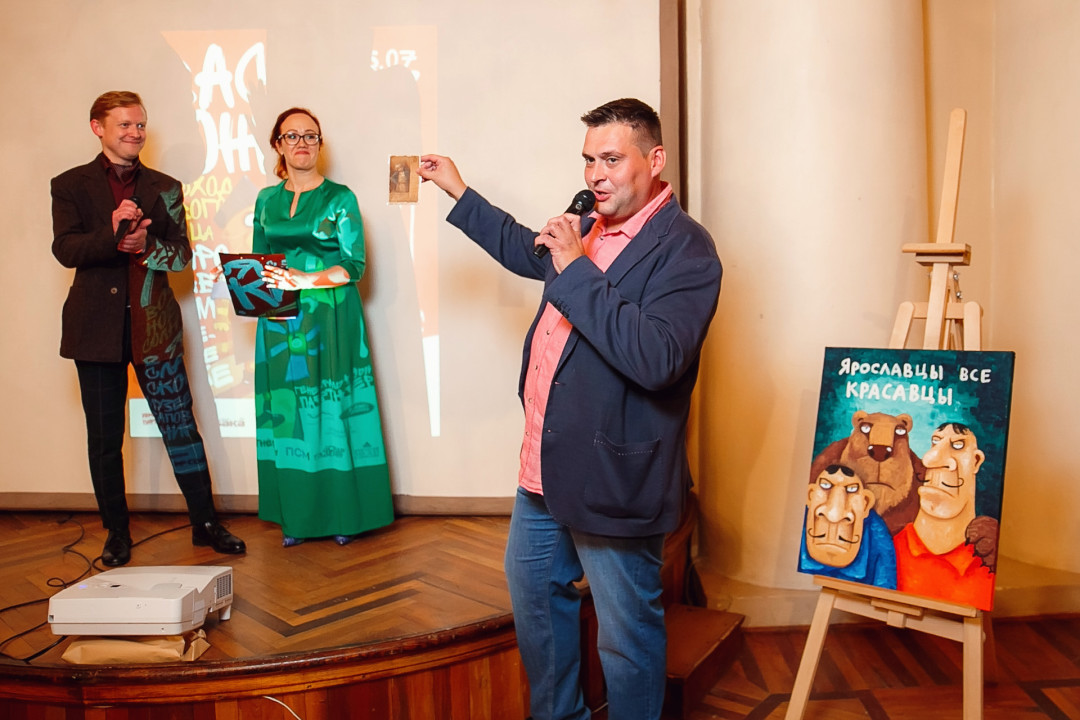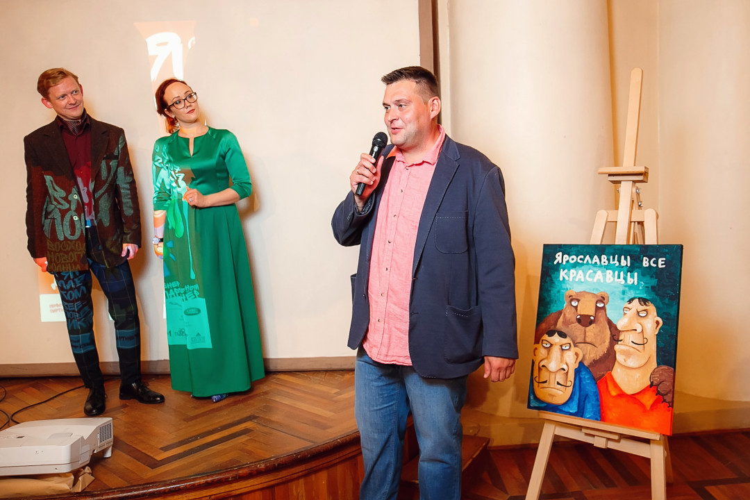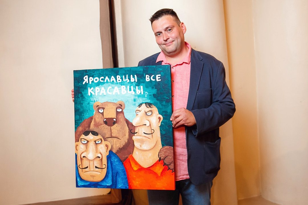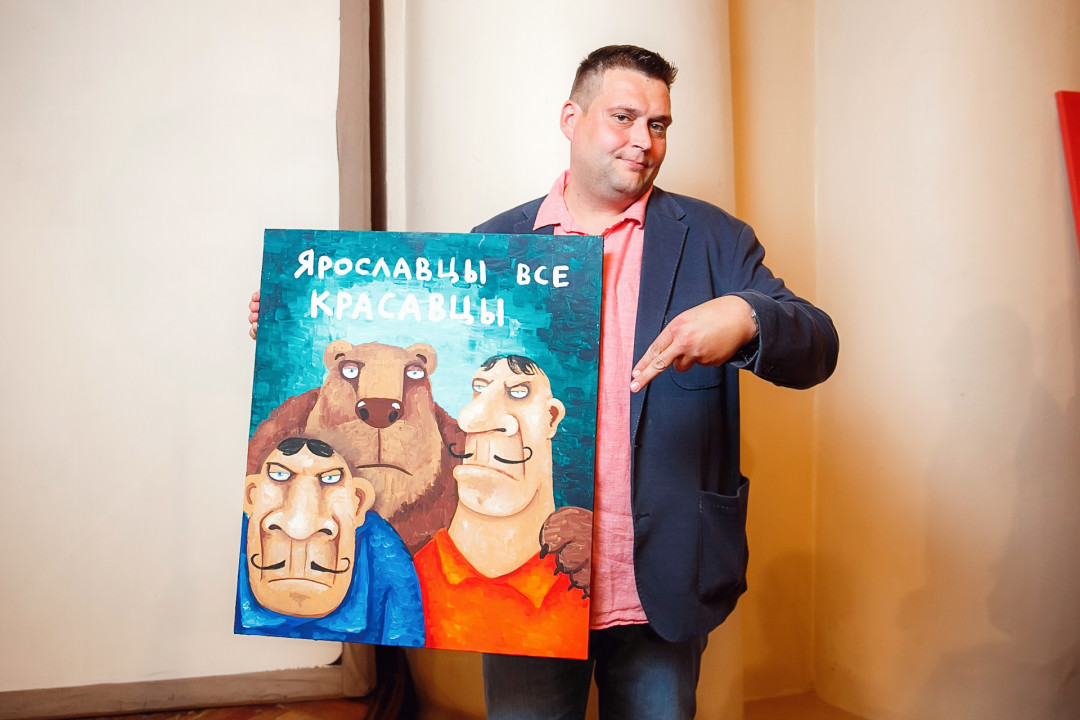 Специально для ивента художник создал серию работ #ЯрославцыВсеКрасавцы. Картину с одноименным названием на аукционе купил известный предприниматель и краевед Ян Левин.