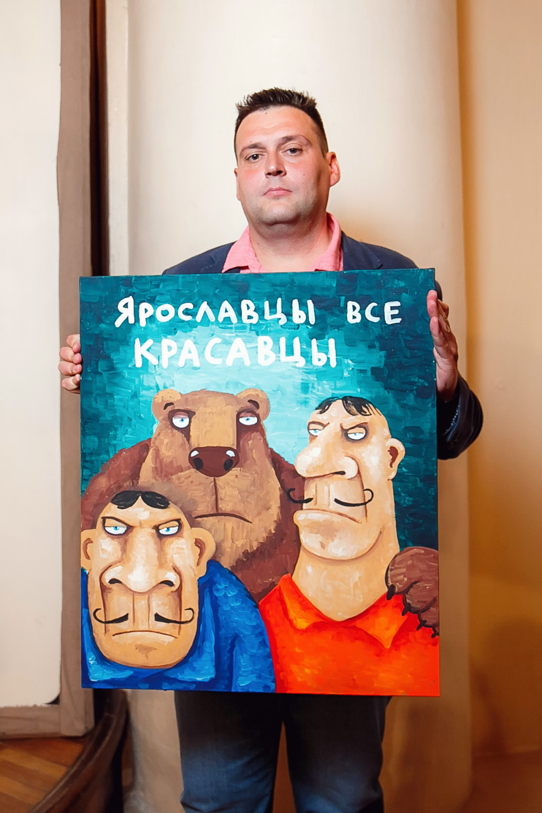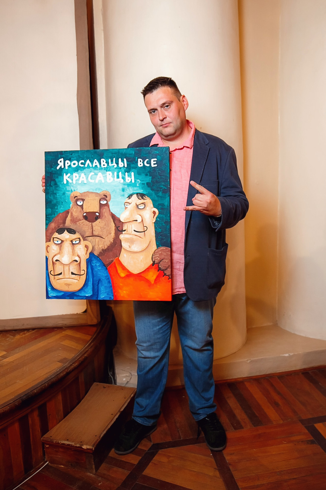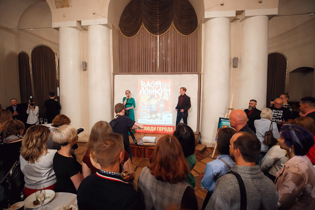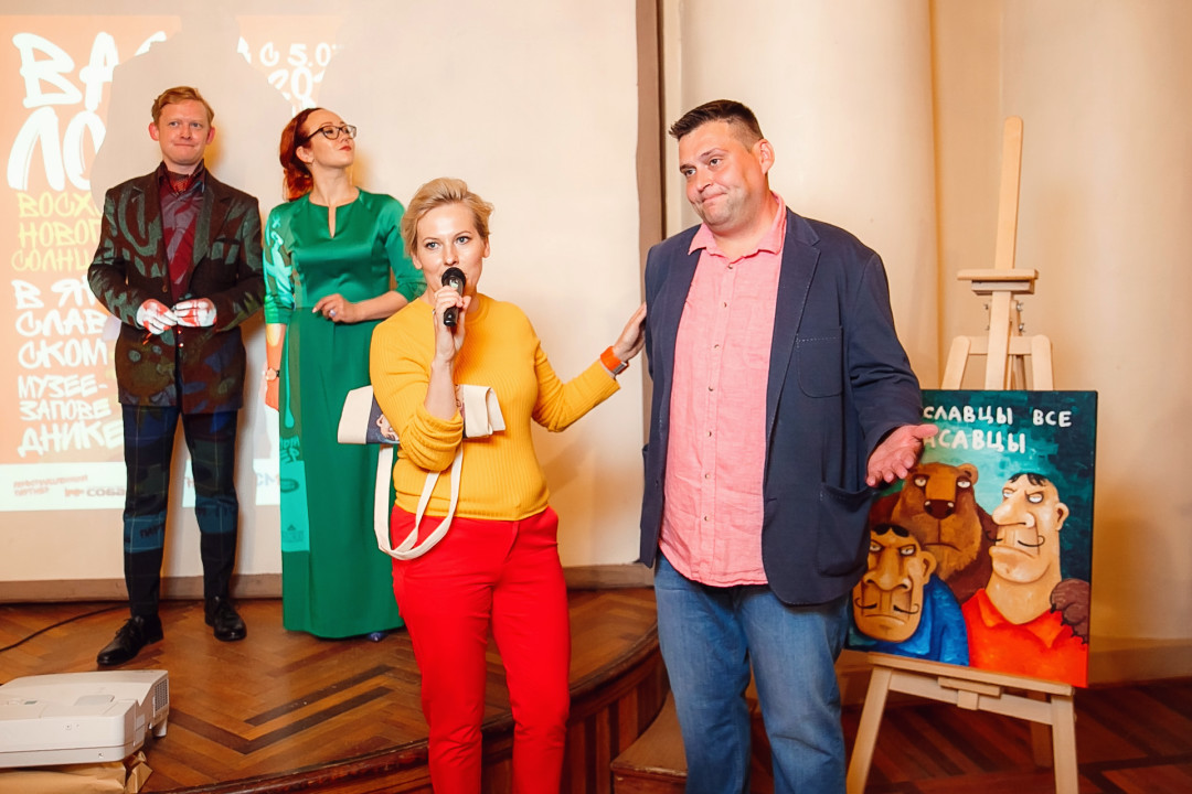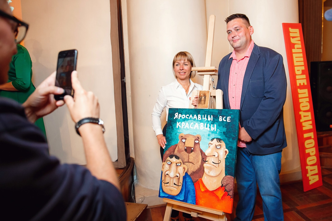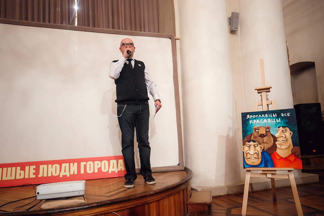 Специально для ивента художник создал серию работ #ЯрославцыВсеКрасавцы. Картину с одноименным названием на аукционе купил известный предприниматель и краевед Ян Левин.