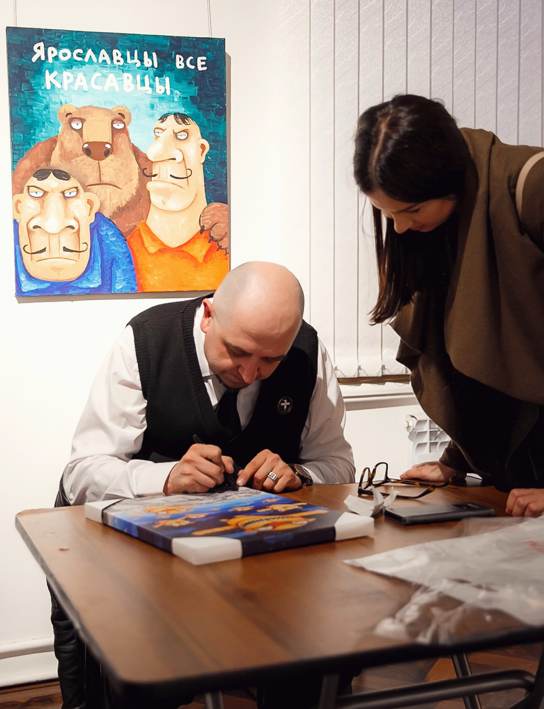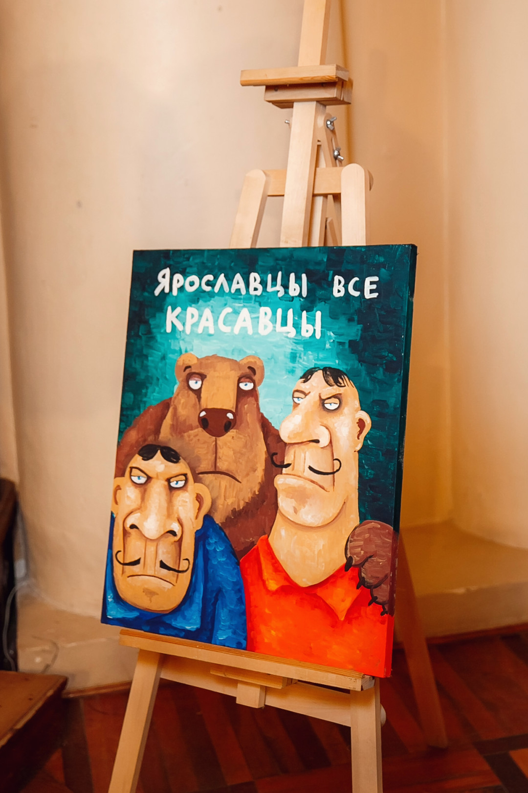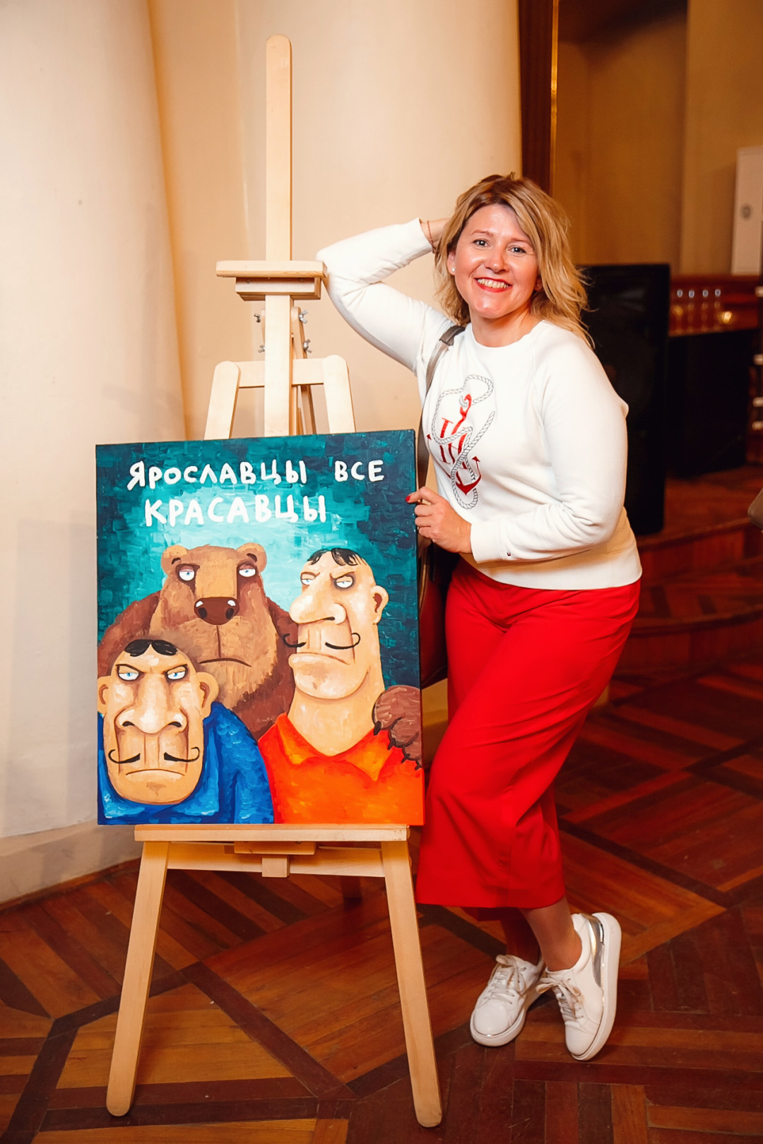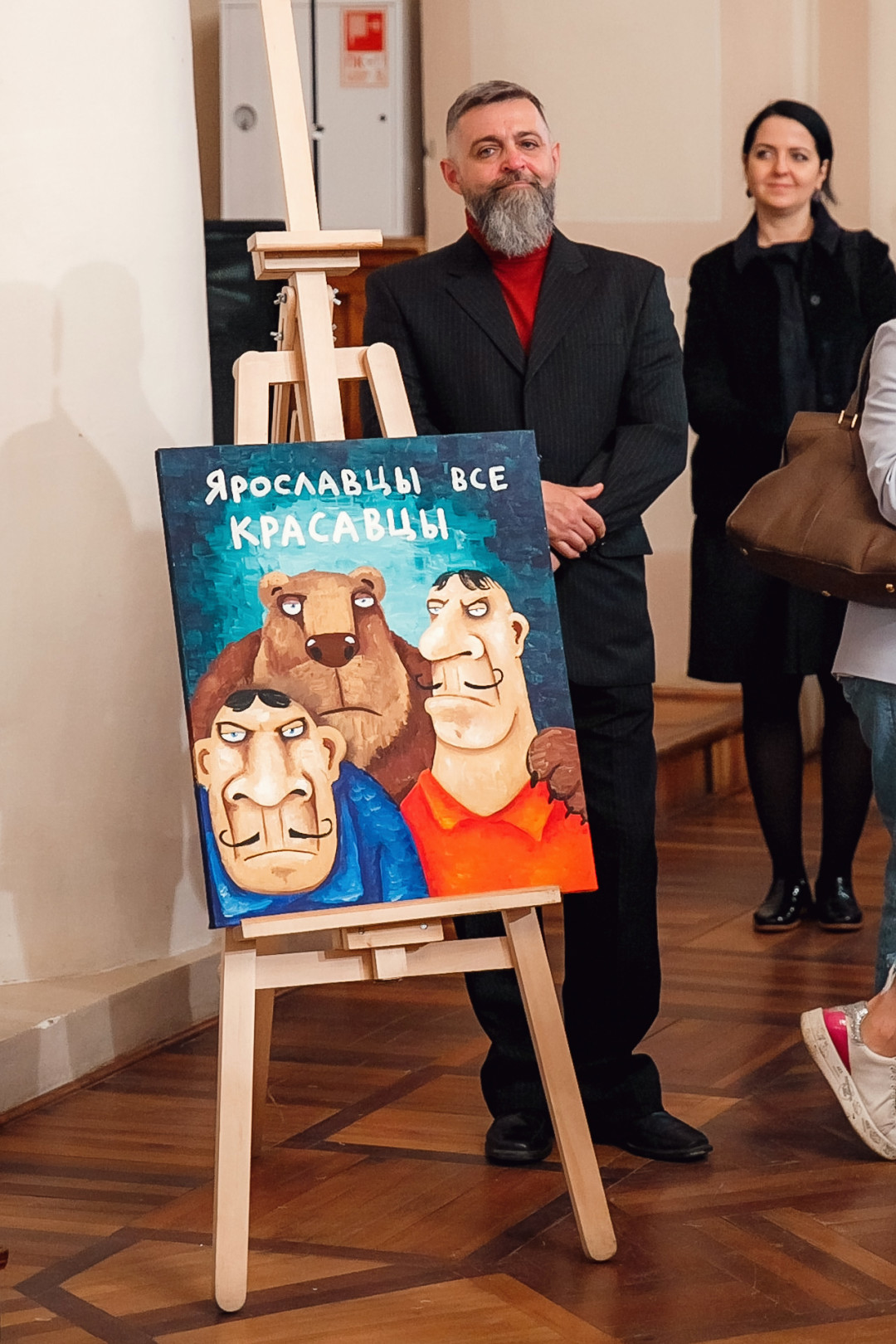 Специально для ивента художник создал серию работ #ЯрославцыВсеКрасавцы. Картину с одноименным названием на аукционе купил известный предприниматель и краевед Ян Левин.