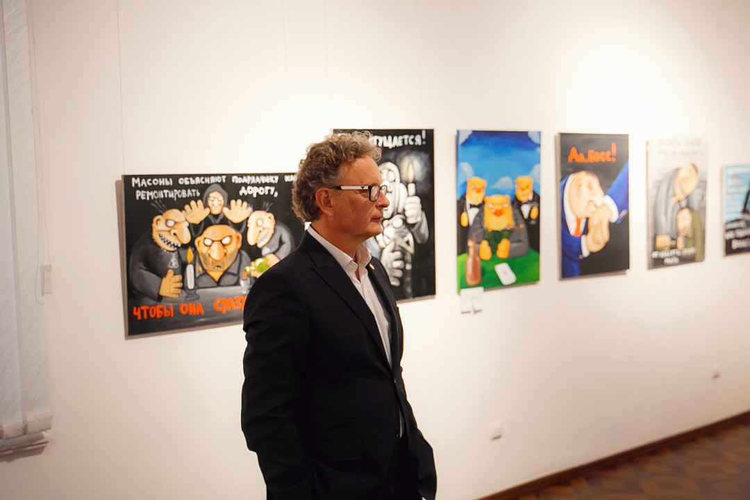 Организатором приема и выставки выступили Юлия Самсоненко и Максим Коробов, которые являются давними друзьями художника.