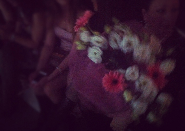 Год назад Игорь Гуляев прибыл в Манеж на лимузине и под руку с Орнеллой Мути. Все папарацци города запечатлели их шествие от ковровой дорожки до подиума. Что же, что же будет на этот раз? Мимо парадного входа проезжает банда байкеров. Вокруг переполох: «Это Гуляев? Это Гуляев?». Всем известно, что на Гуляева издревле повелось ходить с цветами. За минуту до начала показа я устраиваю пробежку по первым рядам, чтобы сфотографировать букеты, которые получит кутюрье. Мастер предпочитает розы.
