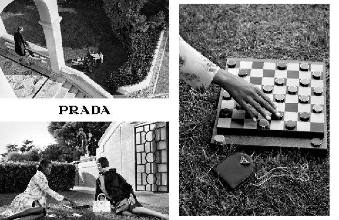 Праздничная рекламная кампания Prada называется A Stranger Calls, название и сюжет съемки придумала британская писательница Кэндис Карти-Уильямс — автор бестселлера «Куини». На снимках весенней пре-коллекции 2021 особое внимание уделено аксессуарам: сумкам Cleo и Galleria, мужским и женским украшениям из серебра и турмалина.