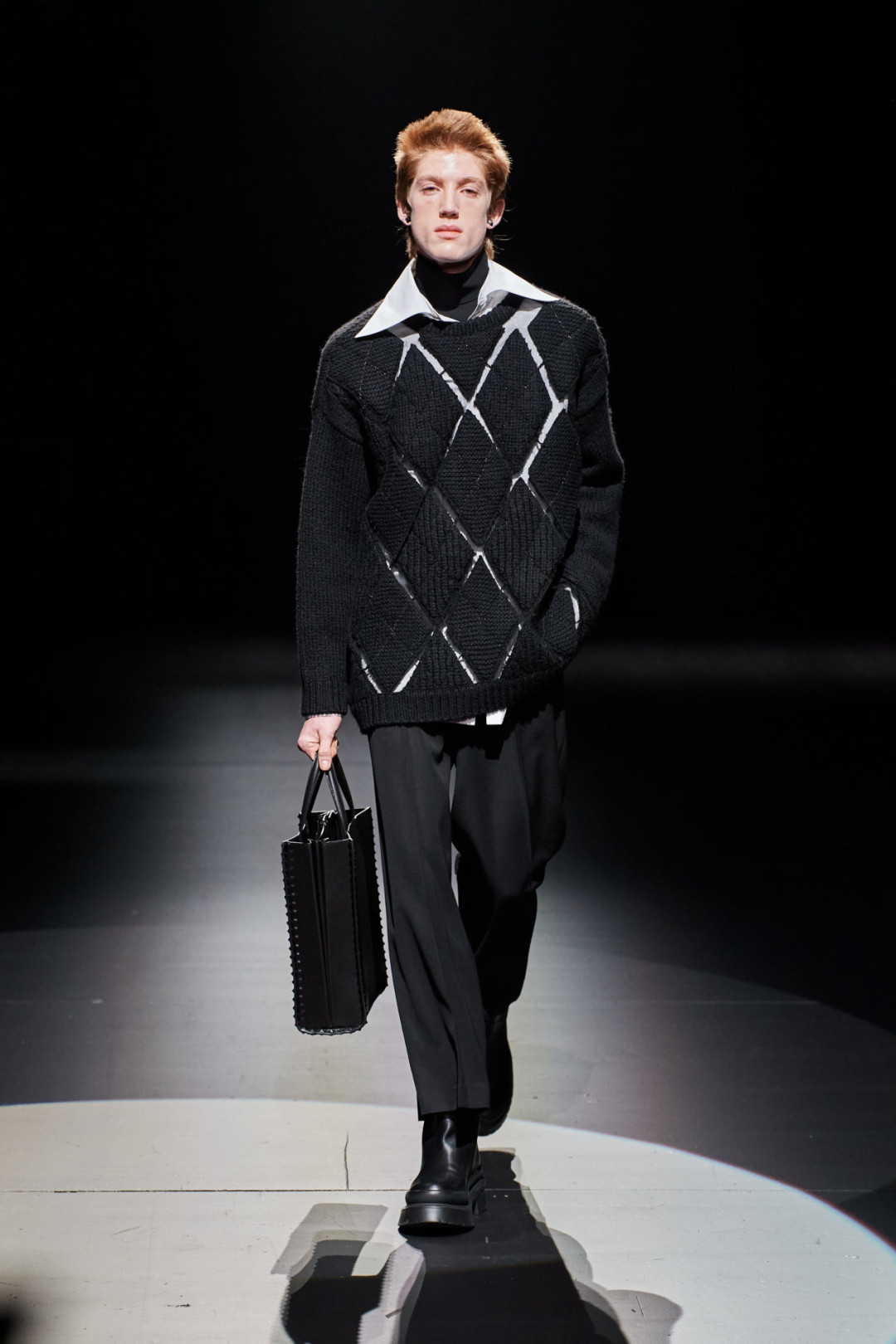 Креативный директор модного дома Пьерпаоло Пиччоли показал мужскую и женскую коллекции вместе. В женскую линию вошли вариации кейпов, блузы в викторианской стиле, полупрозрачные и блестящие платья, а также клетчатые пальто. В мужскую — также пальто, свитеры и водолазки с ромбовидными и круглыми перфорациями, а также куртки. Обе коллекции выполнены в черно-белой цветовой гамме.