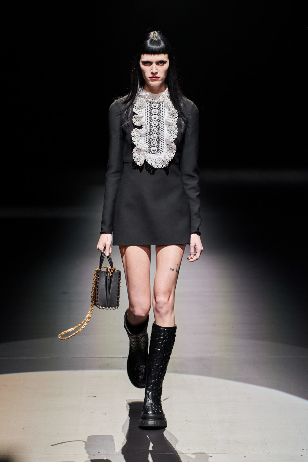 Показ Valentino прошел в театре Piccolo в Милане, провести его именно там Пьерпаоло Пиччоли решил, чтобы поддержать культурные институции, пострадавшие из-за пандемических ограничений. Музыкальное сопровождение шоу — выступление певицы Ама Лу. Она исполнила песню 90-х Nothing Compares 2 U.
