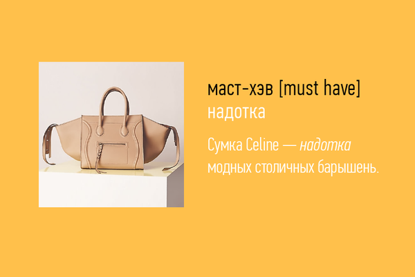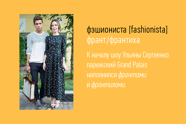 Мода Вещи Вещи Подписаться Вконтакте Telegram Поделиться: ВКонтакте Telegram Одноклассники WhatsApp Viber Яндекс Мессенджер Скопировать ссылку Отправить по почте Отправить в Pocket Поделиться Говорите правильно: фэшн по Далю. Выпуск №1 Сайт «Собака.ru» составляет вокабулярий, для которого будет искать замену модным варваризмам в словарях Даля, Ожегова и Ушакова. В первой части — набившие оскомину «фэшиониста», «маст-хэв», «аутфит» и «клатч». Читать также: Говорите правильно: фэшн по Далю. Выпуск №2 Следите за нашими новостями в Telegram Автор: Alena Galkina, 12 февраля, 2013 Комментарии Комментарии (0) Наши проекты