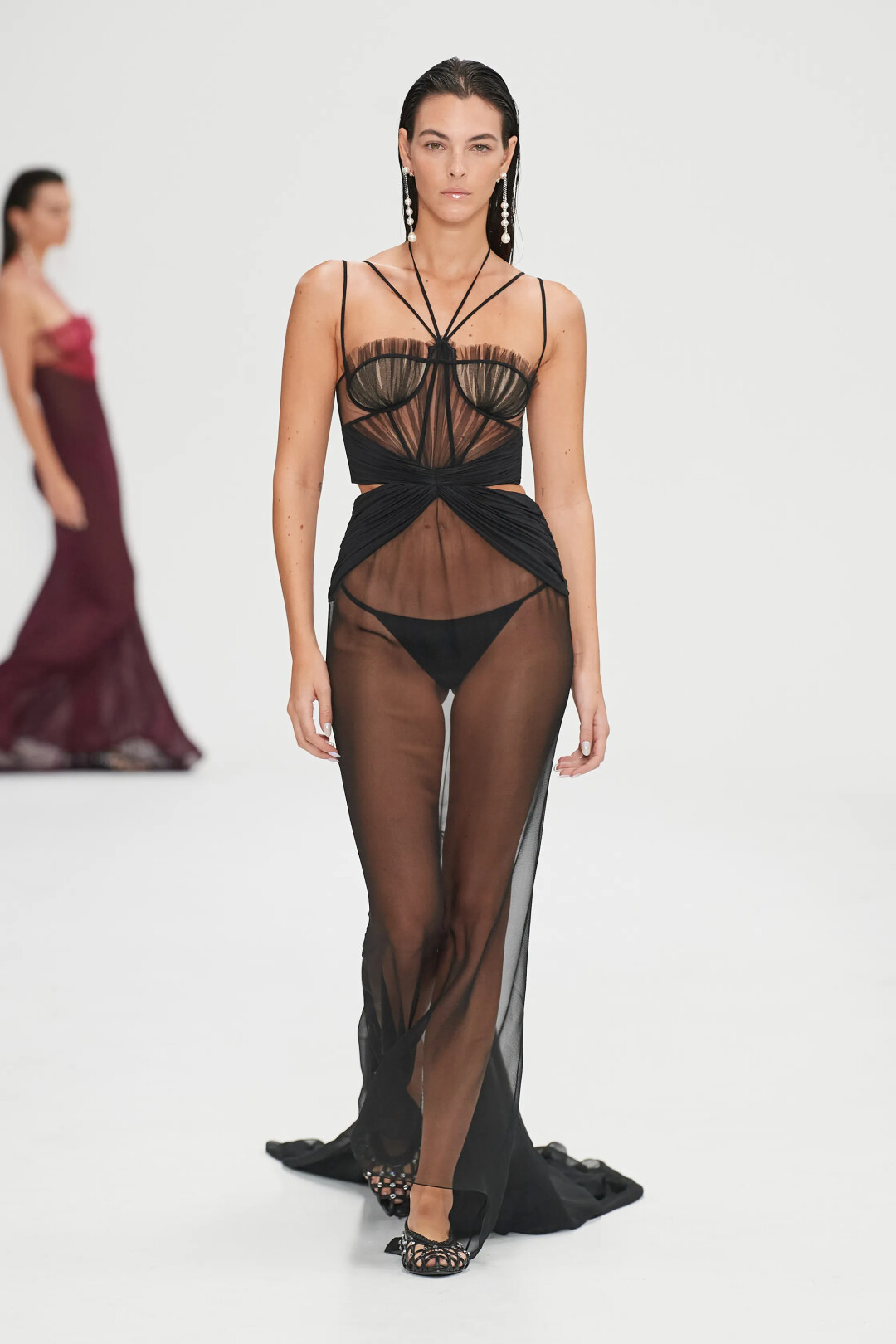 Вместо музыки на показе Кристофера Кейна передавали урок анатомии. Из динамиков лилось: «Я расчленяю женщину. В лучшем виде! В хорошем смысле!».  Как тут не встрепенуться петербургскому сердцу. Так из чего же сделаны наши девчонки? Из шелков, кружев, а также рук и целлофановых пакетов, конечно.