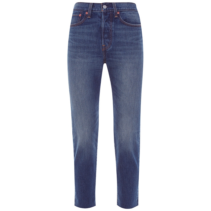 Модель — премьера линии Wedgie — так же, как и ее предшественники, имеет завышенную талию, но отличается другим акцентным решением в посадке на бедрах. Она не только стала более плотной, но и обзавелась сужающейся линией задних карманов, что визуально добавляет объем, прямо как у красавиц с винтажных пинап-открыток. (Levi’s)