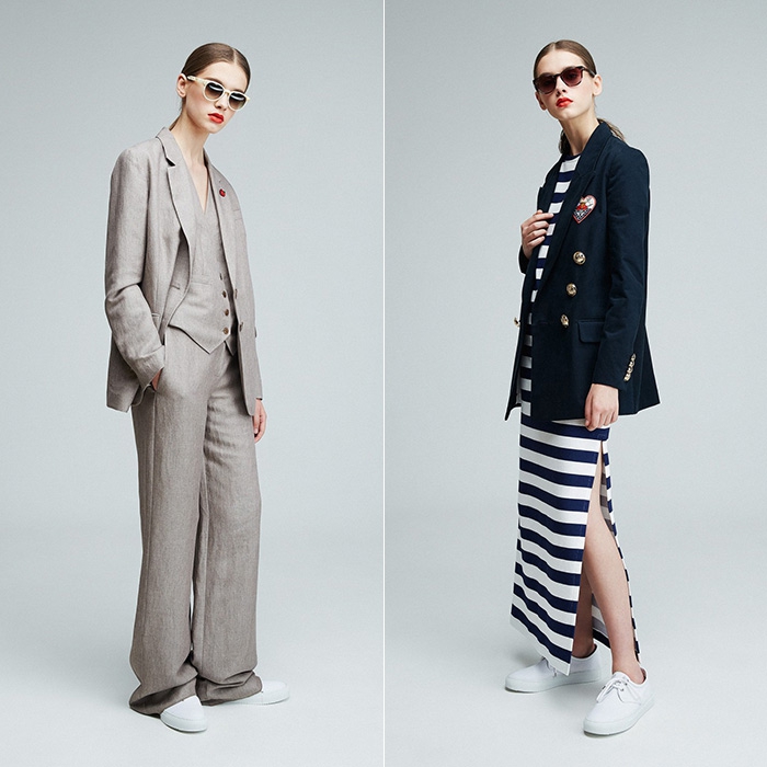 Американская марка держится урбанистичной установки: ничего лишнего, только черно-белая гамма, элементы мужского гардероба и убедительная полоска. Возврат к ДНК марки — минимализму — осуществили ее новые креативные директора Максвелл Осборн и Дао-И Чоу, кстати, прошлогодние победители важнейшей американской премии CFDA/Vogue Fashion Fund в номинации «Лучшие молодые дизайнеры». (DKNY)