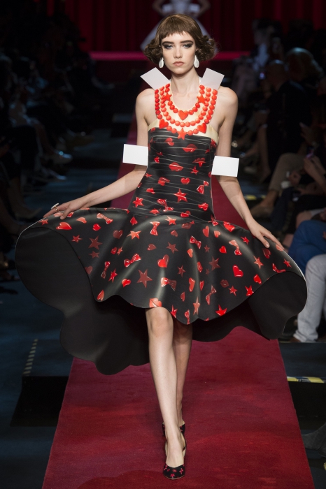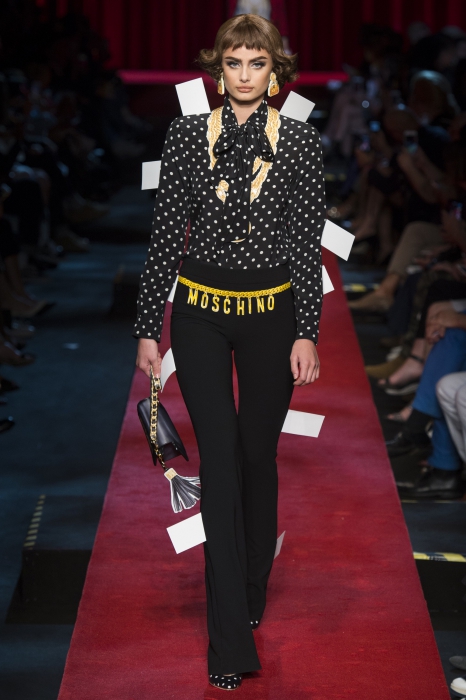 Остроумие Джереми Скотта стало все больше походить на безумие. Новую коллекцию дизайнер Moschino посвятил аналоговой эпохе и 3D-технологий, когда девочки играли не в игры на iPhone, и даже не в Барби, а в бумажные куклы. Модели на подиуме вчерашнего показа и имитировали эти куклы. Узнаваемые образы из 1950-х на подиуме были дополнен бумажным креплением. По фотографиям может показаться, что Скотт приготовил бумажную коллекцию — но на самом деле это мастерски отпечатанные принты, повторяющую фактуру бумаги, на тренчкотах, платьях и купальниках.