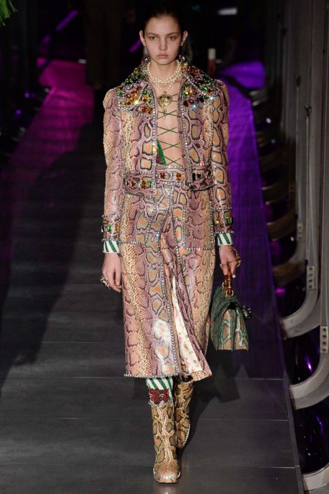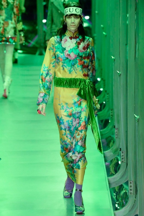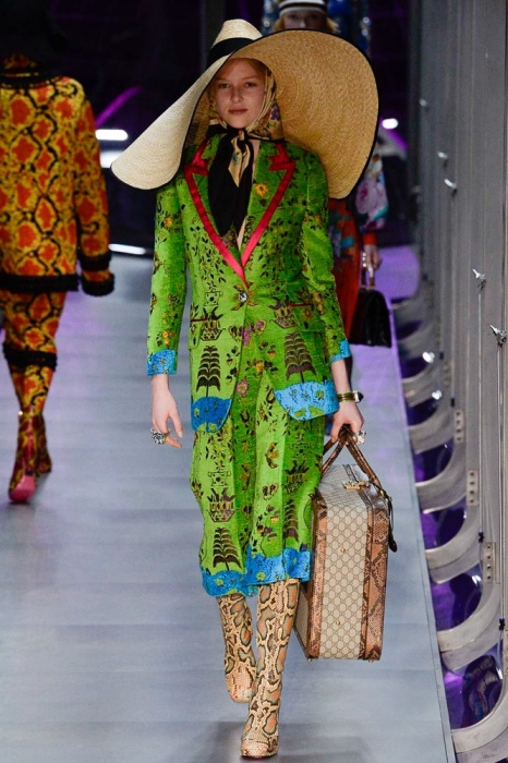 В Милане стартовала неделя моды, и открыл ее показ Gucci. Шоу прошло в пространств Gucci Hub, модели ходили по застекленному подиуму, как по лабиринту. Как всегда, креативному директору Алессандро Микеле удается замешивать десятки культурных направлений.