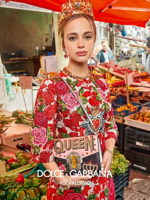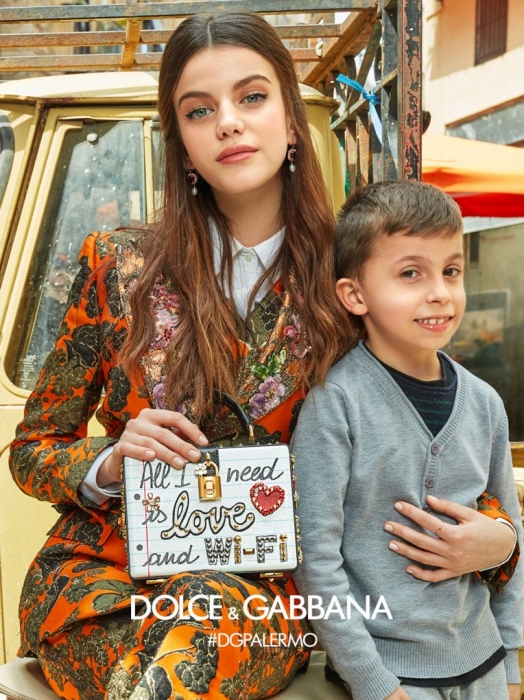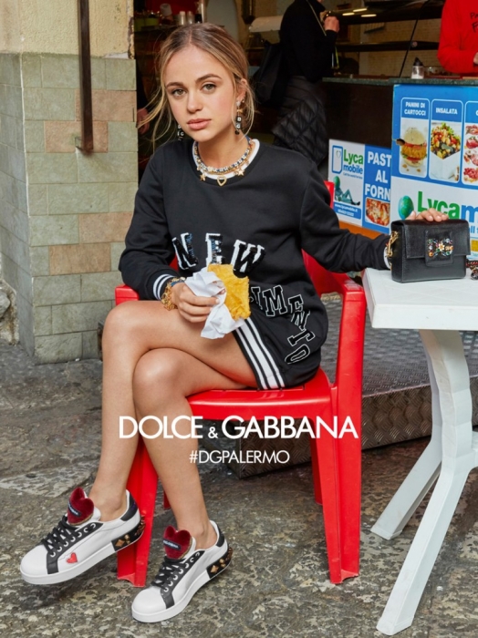 Из всех моделей, что прошлись по подиуму осенне-зимнего показа Dolce & Gabbana, в кампейн попали лишь самые привилегированные: греческая принцесса Мария-Олимпия, внучка принца Эдварда Амелия Виндзор, сын Памелы Андерсон Томас Ли, дочь Стива Харви Лори и другие звездные наследники. Стилисты съемки, прошедшей в бургерных и маркетах Палермо, наделили их привычными атрибутами — коронами, позолоченными наушниками, «королевскими» сумками и кедами со значком «вай-фая».