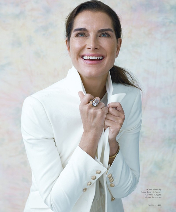 Как и в случае с рекламой Calvin Klein Obsessed, Раф Симонс не стал ходить за музой дальше архивных фотосессий бренда. В кампейне новой осенне-зимней коллекции дизайнер снял модель Брук Шилдс, известную по фильму «Голубая Лагуна» и скандальной съемке Calvin Klein 1980 года. Слоганом кампании тогда стала фраза «Вы хотите знать, что находится между мной и моими джинсами? Ничего», а сама 15-летняя Брук позировала фотографу в синих джинсах и едва застегнутой рубашке. Спустя почти четыре декады Шилдс выглядит феноменально и также без стеснения раздевается перед камерой, отмечая воссоединение с маркой в фирменном белье, льняных комбинезонах и белом обтягивающем платье.