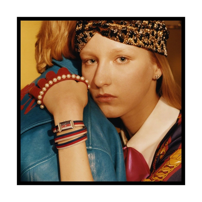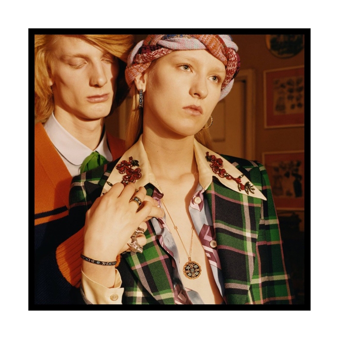 Алессандро Микеле, который старательно выстраивает отношения Gucci с миллениалами, поручил фотографу рекламы ювелирной линейки сделать квадратные кадры, чтобы их без кадрирования можно было выкладывать в Инстаграм. Плюс, под таким углом лучше видно аксессуарное прошлое дизайнера, который до полноценных коллекций из одежды, обуви и сумок набивал руку на сережках, перстнях и «бабушкиных» повязках из 50-х годов.