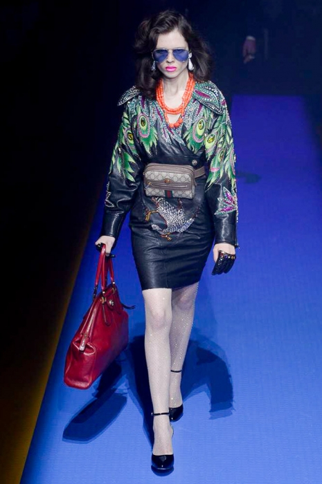 Неделя моды в Милане стартовала с показа весенне-летней коллекции Gucci, которую ежесезонно ждут все, кто любит Алессандро Микеле, «бабушкины» луки и игру в «угадай культурный код». На этот раз мы нашли среди них не ренессансные платья и терновые венки, а Голливуд 70-х (пиджак Элтона Джона, костюм Элвиса Пресли, широкоплечие жакеты и вырви-глаз платья), осовремененный японский костюм (кимоно, каса и жесткие сумки), фильм «Служебный роман» (офисные юбки ниже колен в сочетании с блестящими колготками), а также цирк, мотоспорт и очки виртуальной реальности.