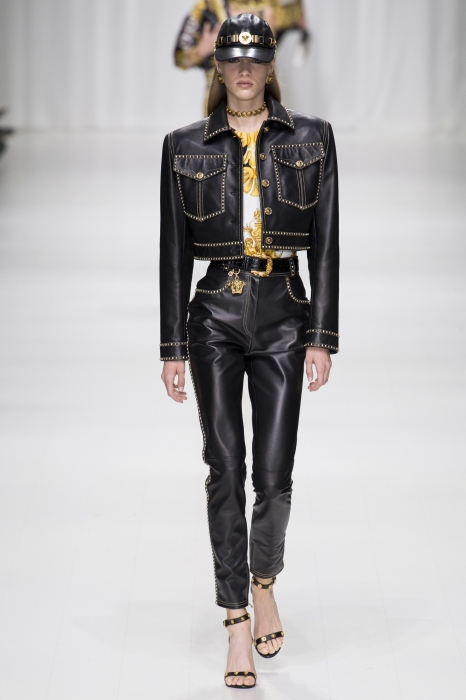 Комбинезоны с триптихом Уорхола «Мэрилин Монро», платья с обложками Vogue за разные годы, брюки с леопардовым принтом кислотного цвета, архитектурные кожаные жакеты с заклепками и джинсовые жилетки — прямые референсы к коллекциям Джанни «Иконы», «Барокко», «Анималия», «Бабочки», «Мой друг Элтон» и другим. Например, черно-белую бальную юбку, в которой на вчерашнем показе дефилировала Наташа Поли, в 1992-м носила Наоми Кэмпбелл на шоу «Коренные американцы». Сама же Наоми, как и другие модели со свойственной для 90-х приставкой «супер», были в блестящих платьях из коллекции «Металлические сети», которые подпрыгивали в такт песне Джорджа Майкла «Freedom». «Это все для тебя, Джанни. Гений, икона, мой брат» — объясняла Донателла.