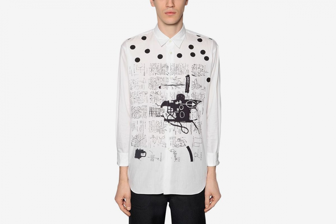 Мы нашли, в чем ехать на выставку Жан-Мишеля Баскии в Париже: Comme des Garçons выпустил рубашки и футболки с работами неоэкспрессиониста. Бренд впервые показал их на мужском шоу в январе этого года, а теперь арт-одежду можно купить — на сайте tres-bien.com она продается по ценам от 129 до 580 долларов.