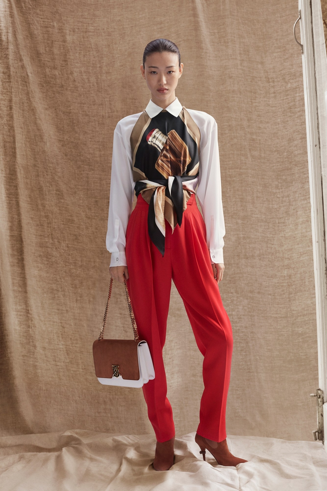 Рикардо Тиши, перешедший из Givenchy в Burberry в марте этого года, показал вторую коллекцию для британского бренда. В pre-fall линейке он продолжил играть с элементами, представленными в рамках ready-to-wear в сентябре: те же сорочки из шелковых платков, те же юбки с фотопринтами и все те жа фирменная клетка на рубашках, кепках и брюках-дудочках. По словам дизайнера, так и было задумано: «Я хотел, чтобы эта коллекция стала продолжением истории, которую я начал рассказывать в прошлый раз, — рассказывает Тиши. — Я сосредоточился на создании собственного ДНК, основываясь на архивных силуэтах, верхней одежде и иконических цветах модного дома».