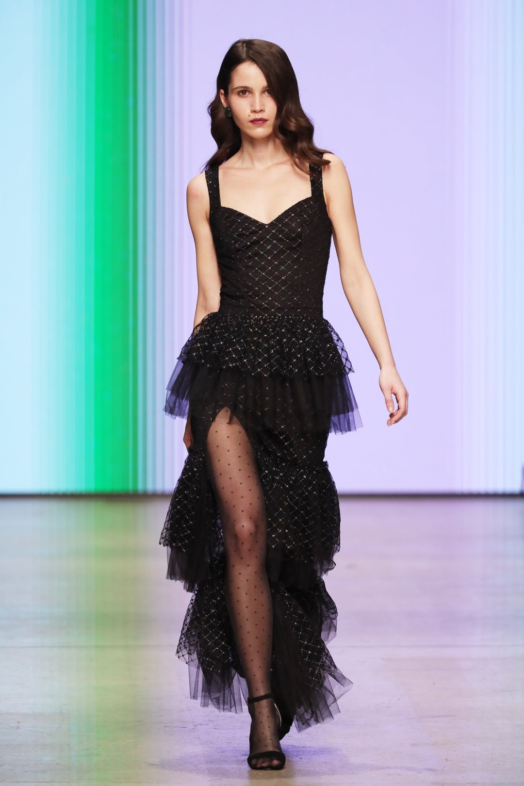 Мэган Виртанен: Это помесь модного журнала образца 1952 года с любительской театральной постановкой «Семейки Адамс». Но в целом — неплохие черные платья, которые будут хорошо продаваться, а вечерний наряд с пайетками — так вообще потенциальный хит предновогодних корпоративов. Но все как-то без огонька, даже метла не спасает, а тема летучих мышей оказалась незаслуженно не раскрыта. Шляпки и прочие аксессуары, кажется, вовсе подбирали в последний момент по принципу «что найдется», и это дополнительно вызывает в памяти низкобюджетные нуары 1950-х, если вообще не одиозные фильмы Эдварда Вуда.