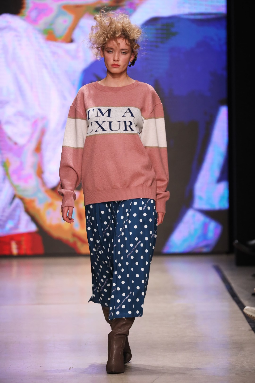 Мэган Виртанен: Эту коллекцию можно не комментировать вообще — там, где уже ничего не может быть сделано, остается только явить молчаливое принятие и запить его пустырником или валерьянкой. Однако соцсети всколыхнуло обсуждение: дизайнер и ее муза Ольга Бузова выясняют, кто именно является автором «эксклюзивного принта» в виде губ неоновых оттенков. Подсказки из зала в духе «подобные идеи были еще у Эльзы Скиапарелли», «Ив Сен-Лоран в 1971 году», «у Прада в 2000-м мелькало» — не принимаются. Да и зачем? В данном случае посмотреть на разворачивающуюся драму будет на несколько порядков интереснее, чем непосредственно на вещи.