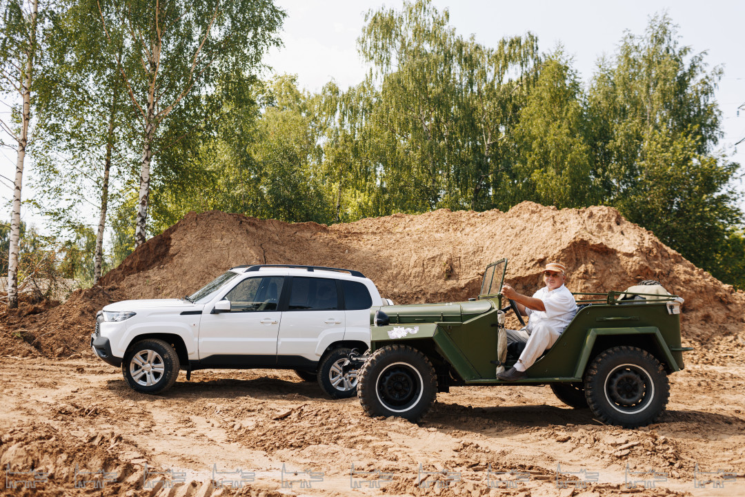 Легенды должны удивлять, поэтому на нашу встречу Александр Исаченко приехал не на каком-то современном автомобиле, а на военной машине 1943 года выпуска, который отреставрировал своими руками. В долгу не остались и друзья из Кострома-Лада-Сервис, продемонстрировав гостю мощь и силу обновленной LADA Niva Travel.