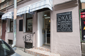 Место на Пяти углах было выбрано не случайно. Рядом — улица Рубинштейна, центр ресторанной активности в Петербурге. Раньше в доме № 26 по улице Ломоносова была пекарня, позже — местный салон красоты. От пекарни в «Букле» остался только пол — мозаичный с этническими мотивами, его постарались уравновесить белыми стенами. Весь же ремонт провели в рекордно короткие сроки, за полтора месяца.