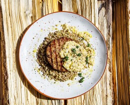 Бифштекс из кролика с зеленой гречей от Евгения Нечаева