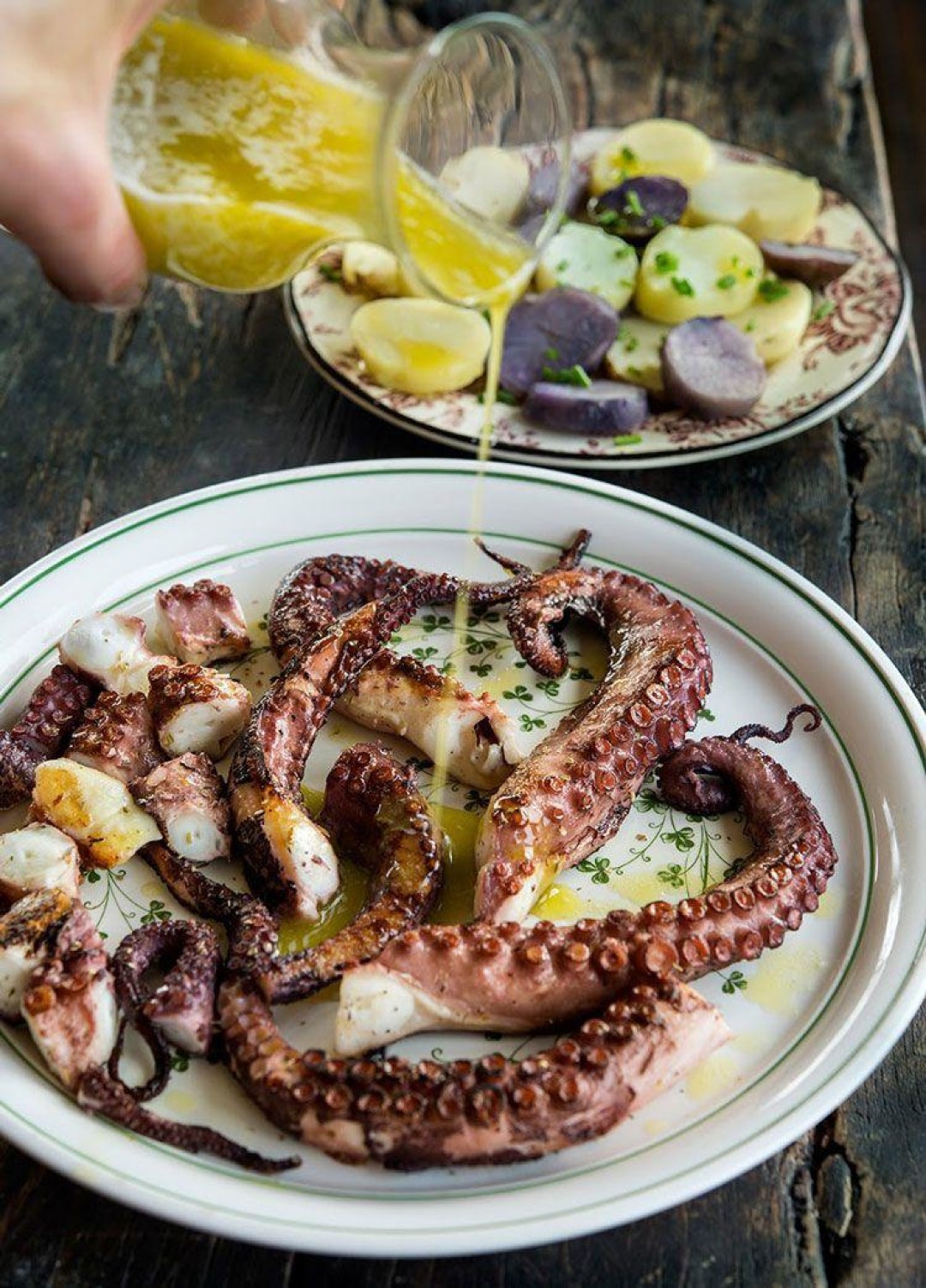 Я свои кулинарные шедевры, к сожалению, не фотографировал. Но обещаю, что если наступит та самая «вторая волна», то я непременно освою фудфотографию и мы с вами поговорим об этом! (Смеется.) А пока, предупреждая вопросы читателей, делюсь адаптированным под собственные предпочтения рецептом осьминога из книги Miele!