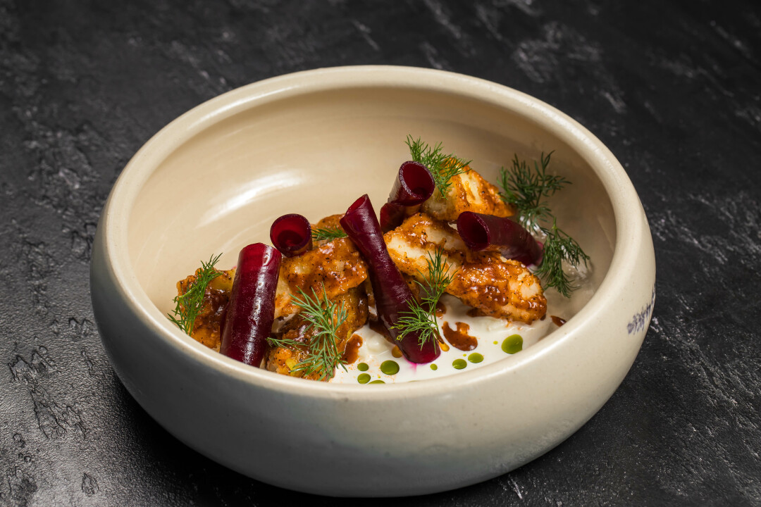 Вдохновленный вкусами и сочетаниями локальных продуктов фермерских хозяйств Кубани, он с командой создал интересные гастрономические пары, которые ценят гости ресторана. Классические блюда в их интерпретации приобрели новый вид и интересные оттенки вкуса. Тут и черноморский анчоус с сыром страчателла и копчеными томатами, и черноморская кефаль с соусом понзу, анчоусным маслом и редисом, черноморские мидии в разных соусах, тирамису из рапанов, пицца, супы, паста и большой список основных блюд с гребешками, стейками семги, цыпленком, уткой, индейкой, бараниной и свининой. Меню меняется в зависимости от сезона.