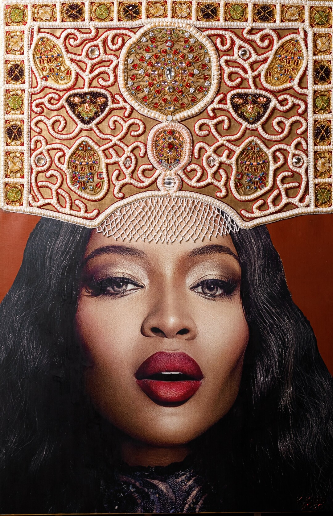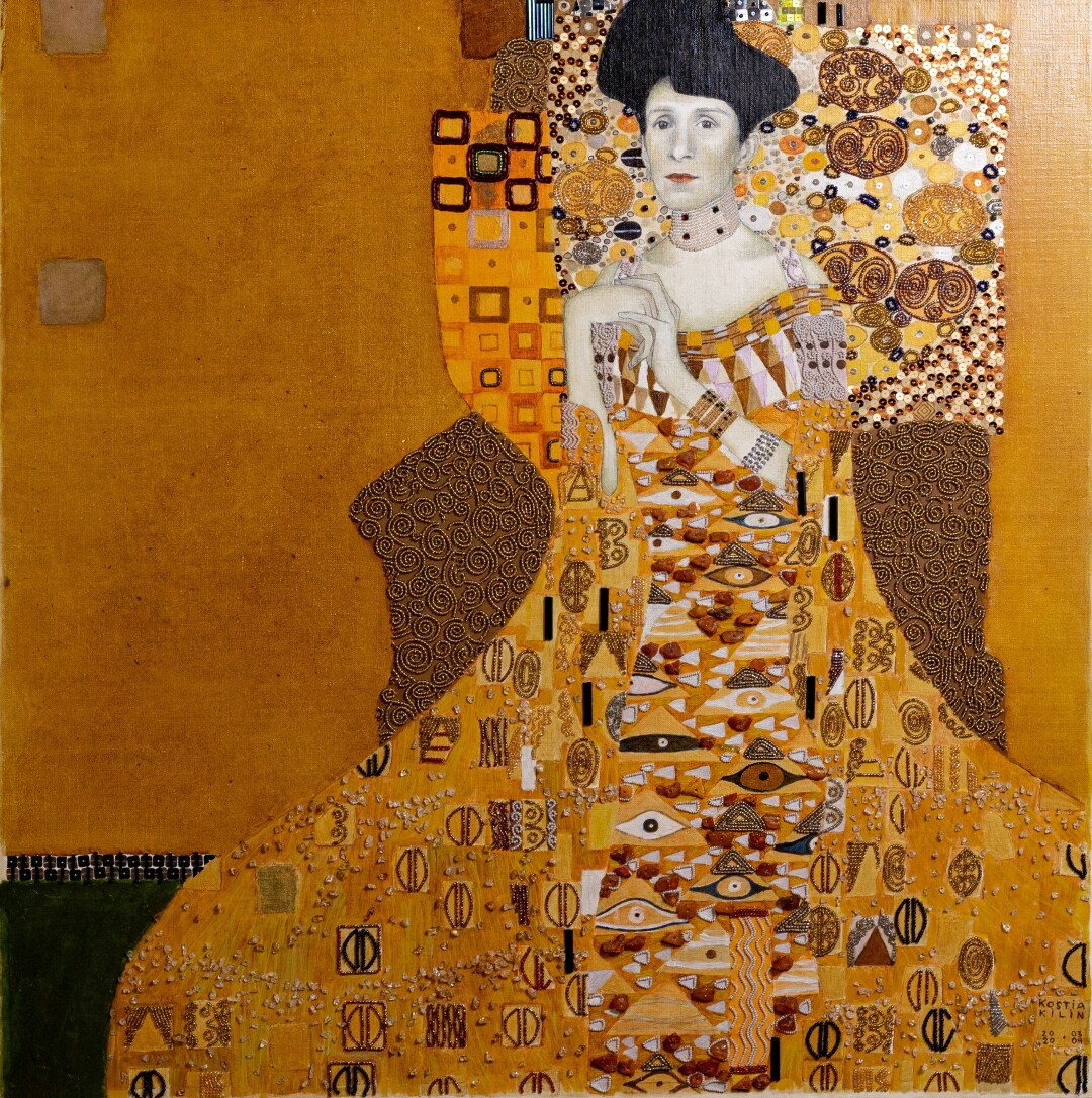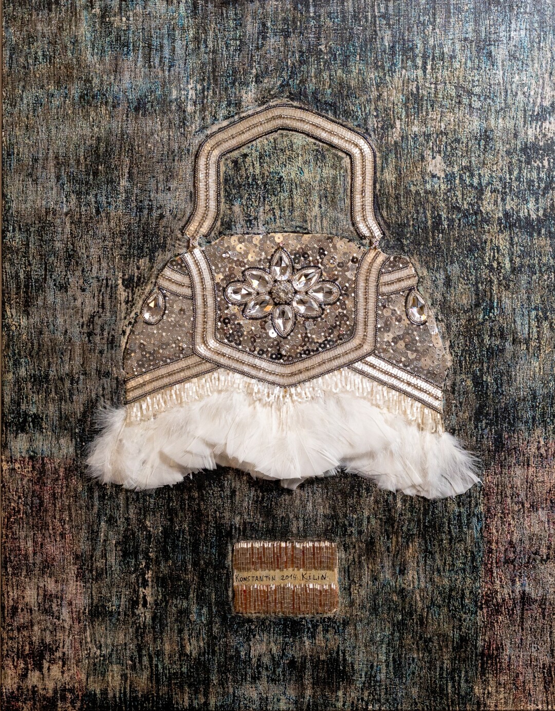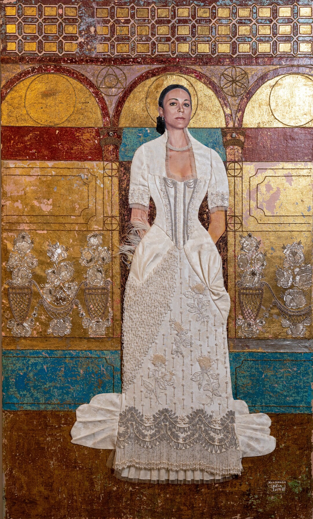 Константин создает портреты родственников, друзей, известных персон «одетых» в дорогие камни, золото, жемчуг, кристаллы Swarovski, янтарь и прочие материалы, что делает рисунок рельефным, дополнительно подчеркнутым игрой света и тени.