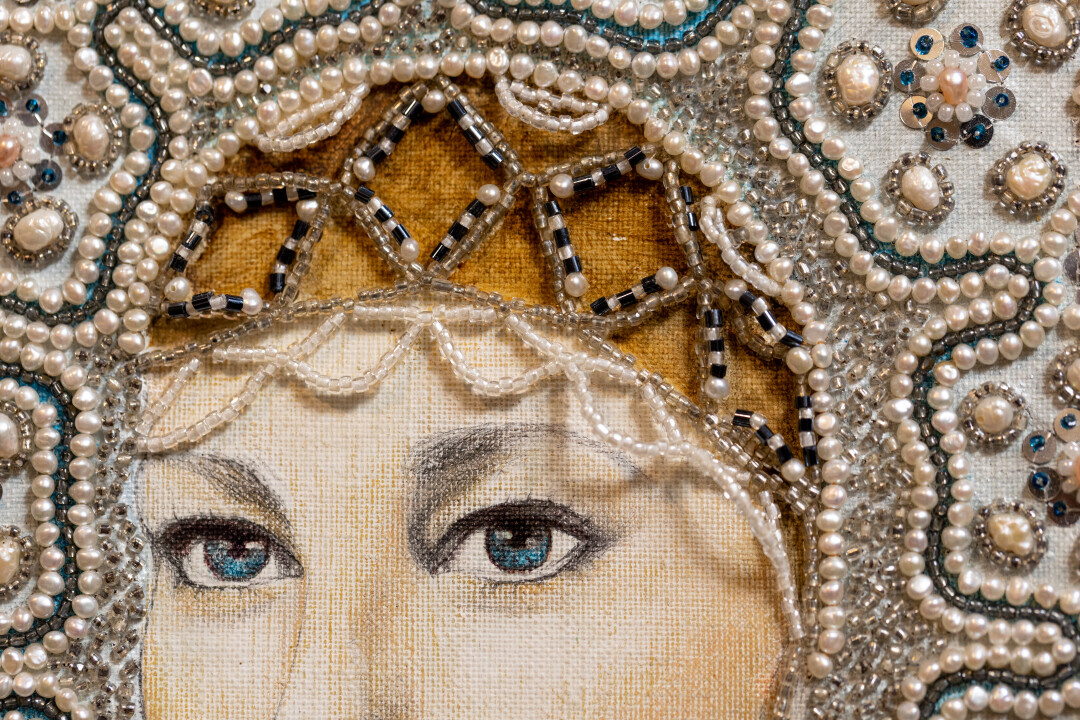 Работы на стыке современной живописи, сакрального и декоративно-прикладного искусства, фотографии и изящной вышивки, типичной для русской традиции XVII-XIX веков встречаются не часто и от того такое арт-явление еще более любопытно в нынешних реалиях.