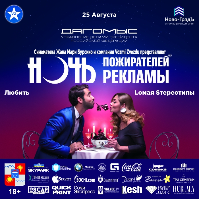 25 августа 2017 года на территории «Оздоровительного комплекса "Дагомыс" Управления делами Президента, в одном из самых красивых мест отдыха на Черноморском побережье России мировое шоу "Ночь пожирателей рекламы 2017" объединит сотни гостей и жителей города, а также профессионалов рекламного бизнеса и любителей кино за просмотром 400 мини-фильмов, в каждом из которых менее чем за минуту показаны завязка, кульминация и финал - высший профессиональный пилотаж режиссуры.
