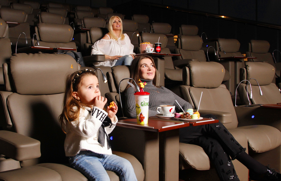 В кинозале можно заказать себе вкуснейший кофе и закуски, или даже устроить романтическое свидание с бокалом игристого. Современный сервис E-ticket в фойе кинотеатра позволит легко и быстро приобретать электронные билеты без длительного ожидания в очередях касс и личного контакта с персоналом. Атмосферная лаундж-зона с панорамным видом на город идеально подойдет для отдыха после трудового дня. Здесь можно погрузиться в атмосферу комфорта, сервиса и увлекательного кино.
