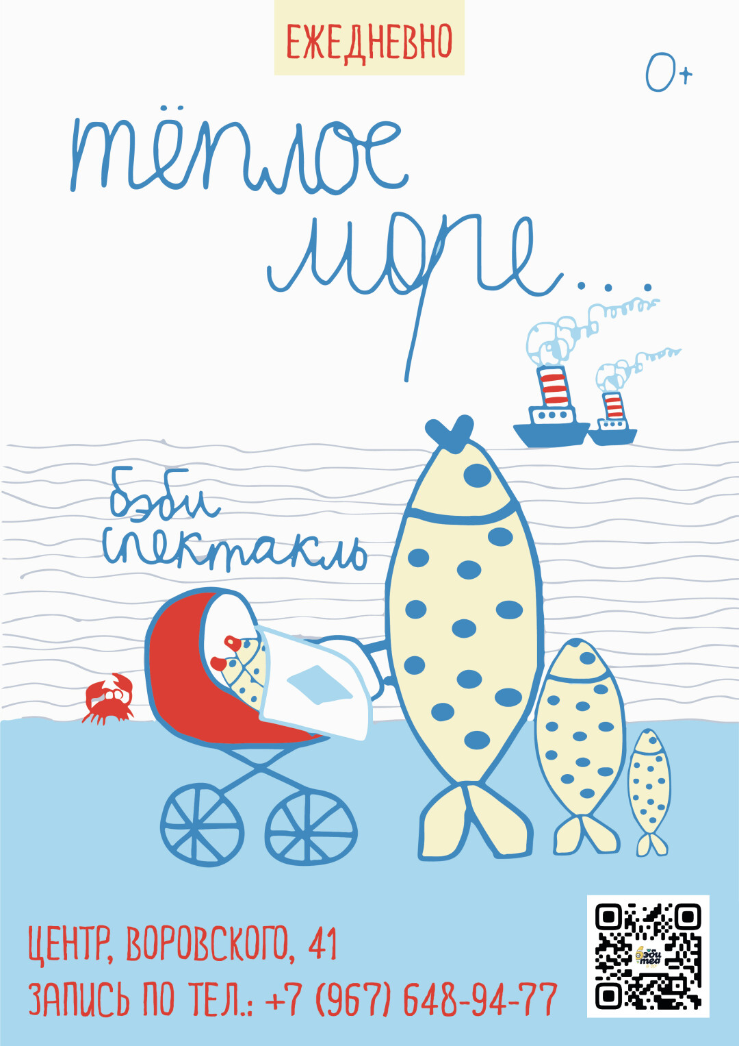 Приглашаем малышей в пространство, наполненное звуками, цветами и фактурами морского берега, которое перенесет маленьких зрителей в увлекательное путешествие на побережье: будем слушать шум моря, забираться в пещеры, раскачиваться на гамаках и встречать закат. Опустимся на морские глубины, чтобы понаблюдать за рыбами, споем им колыбельную и запутаемся в водорослях. Посмотрим, как ночью морские черепахи выбираются на берег и откладывают яйца в песок. Найдем свое отражение в зеркальных рыбках и покачаемся на волнах. Увидим, как зажигается маяк и как корабль движется по звездам. Во время спектакля малыши смогут полностью погрузиться в атмосферу, исследовать море и наблюдать за его обитателями, следуя за актерами.