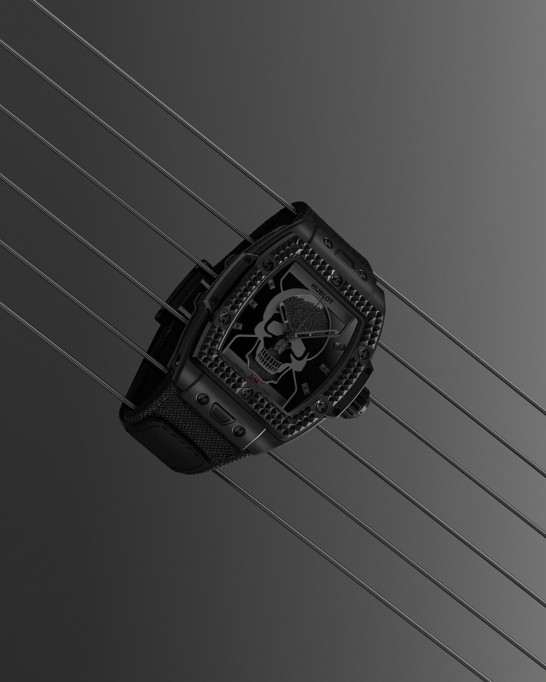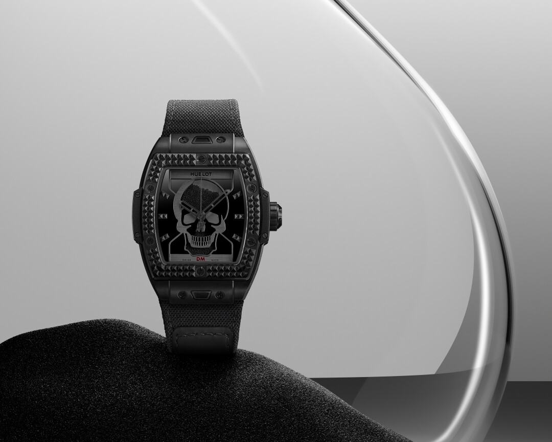 Арт-символ новой пластинки музыкального дуэта Дейва Гаана и Мартина Гора — дарк-череп с песочными часами — запечатлен на циферблате Hublot в границах фирменного бочкообразного корпуса Spirit of Big Bang. Часовые метки превращены в пирамидальные рок-шипы (хардкорный узор повторяется на черном керамическом безеле!), а на шестичасовой отметке зашифрованы инициалы DM. Технологическая суперсила механизма — автоподзавод и 50-часовой запас хода.
