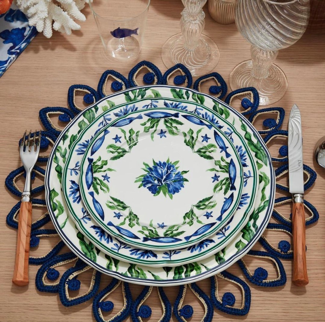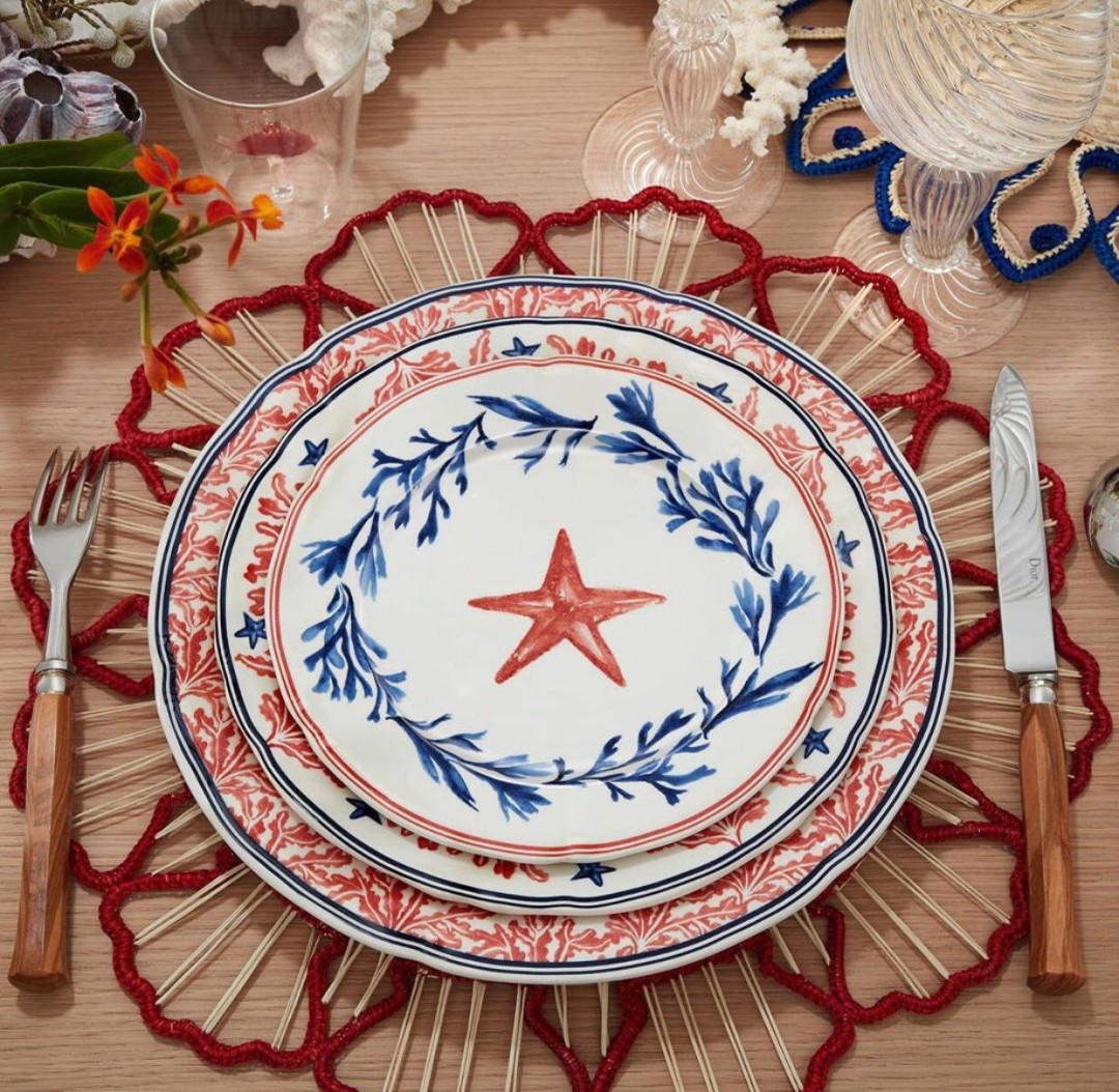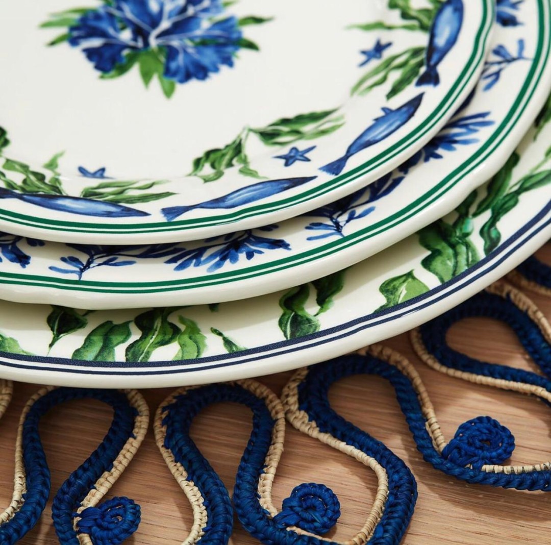Экзотические веяния в 2020-м продолжает Корделия де Кастеллан, разработавшая для Dior Maison серию тарелок, ваз и кувшинов с морскими мотивами. В числе «бразильских» декоративных объектов есть и плетеные подставки под посуду.