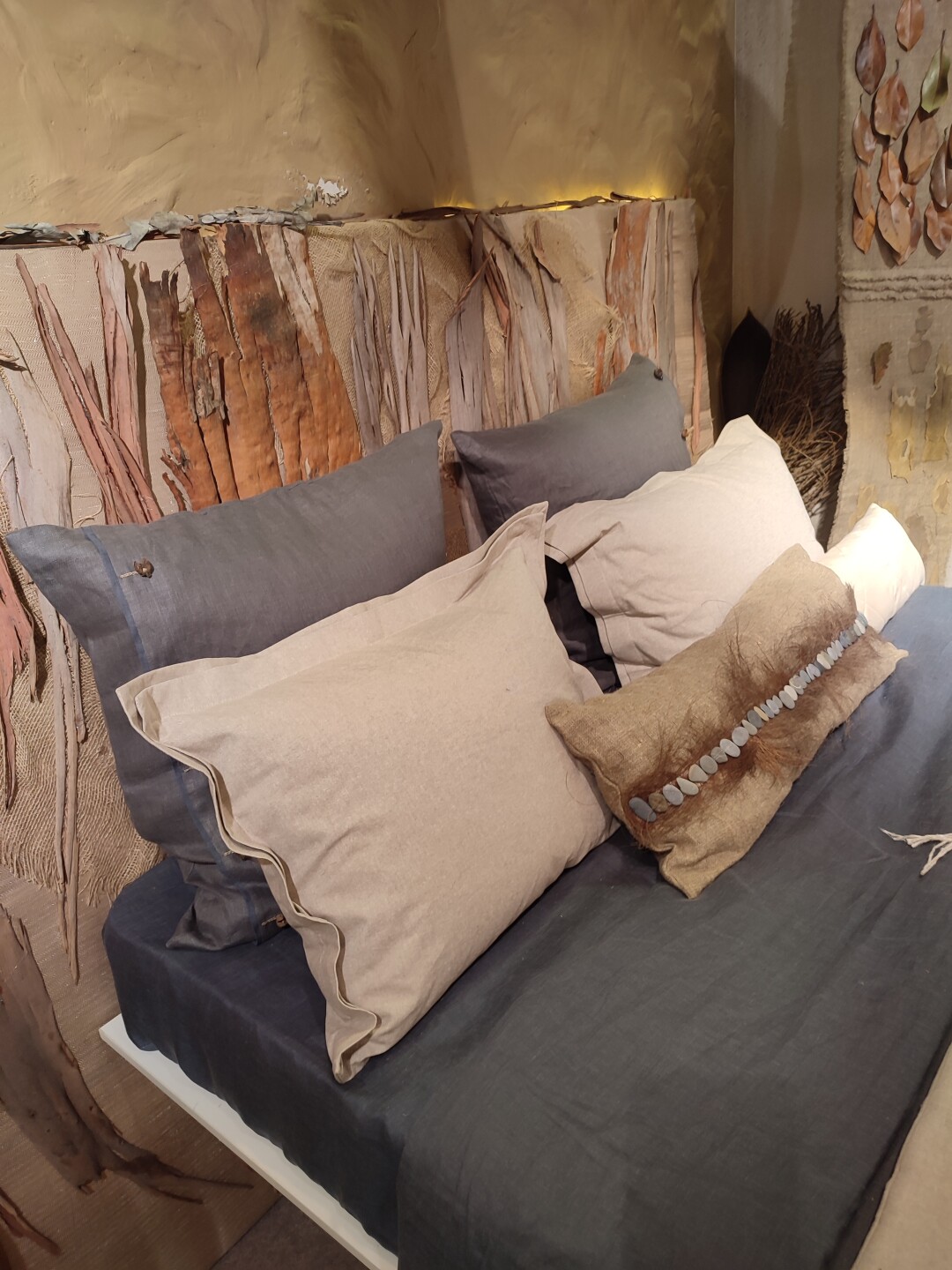 В инсталляции «природа и отдых» мебель, элементы освещения и другие детали декорированы оригинальными материалами: камнями, предполагаем с побережья, древесной корой и глиной. Довольно смелые решения. Чем руководствовалась ваша команда при разработке идеи?