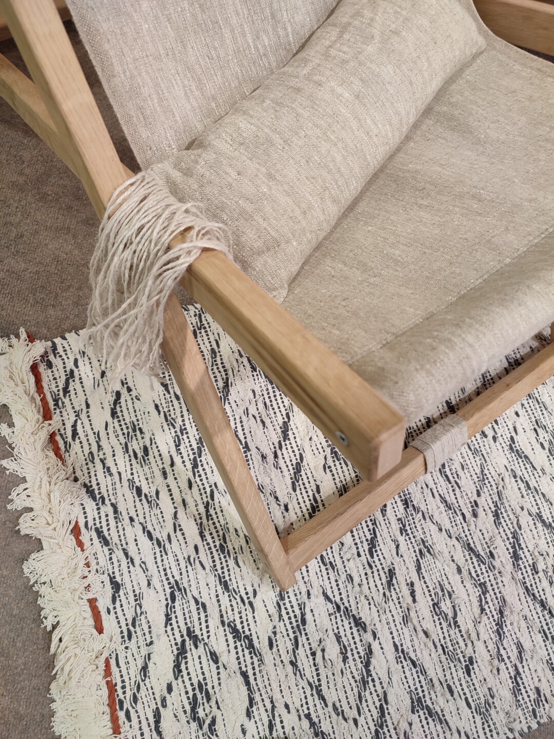 Возможно, природа – это место отдыха от слишком высокого темпа современной жизни. А что насчет отдыха природы от бездумного и расточительного использования ресурсов? Ольга соединила отдых человека и природы в одном пространстве. Свидетели инсталляции имели возможность погрузиться не только в атмосферу, созданную самой природой – кора дерева, камни, штормовые деревья и палки, но и увидеть историю бережного отношения и сохранения природных ресурсов, которую Ольга рассказала через ткани.