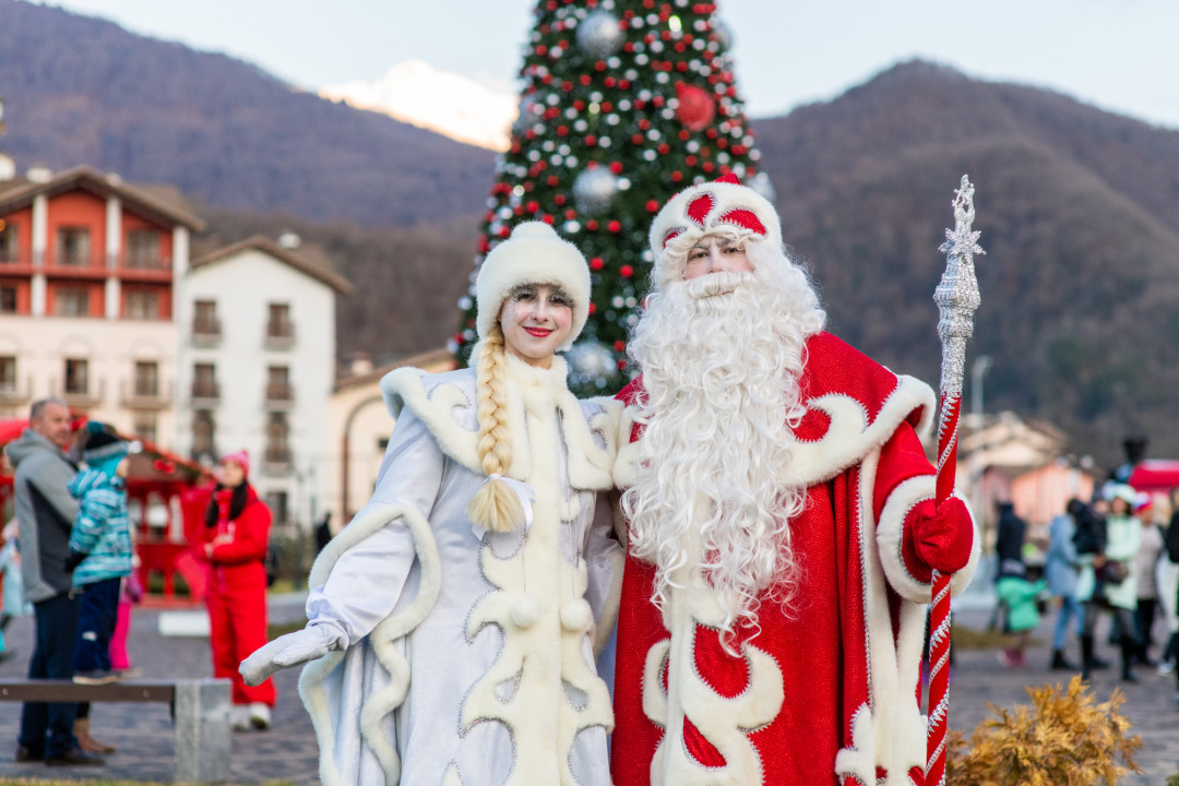 Основное торжество пройдет в парке Времена года на Поляне 540. Именно здесь поставят свою резиденцию Дед Мороз и Снегурочка, ее двери открыты для юных гостей и мечтателей постарше. Их помощники – эльфы и другие сказочные персонажи – помогут создать хорошее настроение, перемещаясь между высотами курорта. На открытой сцене состоится музыкальное театрализованное представление с участием профессиональных вокалисток, выступит кавер-группа «Бомбей», новогодний диджей-сет и дискотека 90-х точно не дадут замерзнуть и заскучать. После боя курантов и новогодней речи президента с большого экрана ночное небо раскрасит праздничный фейерверк.