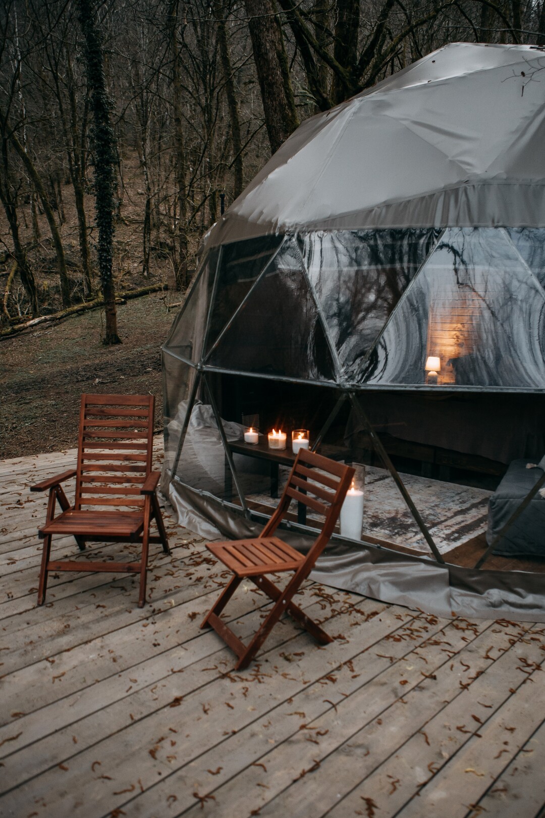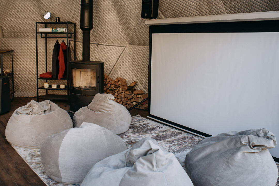 В Villy Uley есть отдельный шатер-гостиная, в котором гостей накормят завтраком, обедом и ужином, приготовленными шеф-поваром проекта. В гостиной также можно пообщаться с близкими по духу собеседниками, послушать музыку, почитать книгу или посмотреть авторское кино на проекторе. А еще здесь есть уютные пледы и вкусные травяные чаи — все, чтобы расслабиться и быть собой. Для маленьких гостей команда продумала отдельное пространство для увлекательных игр и занятий. Для тотального релакса гости могут сходить в баню со всеми удобствами и душевой модуль с чайной комнатой. Не забывайте, что все это находится в лесу!