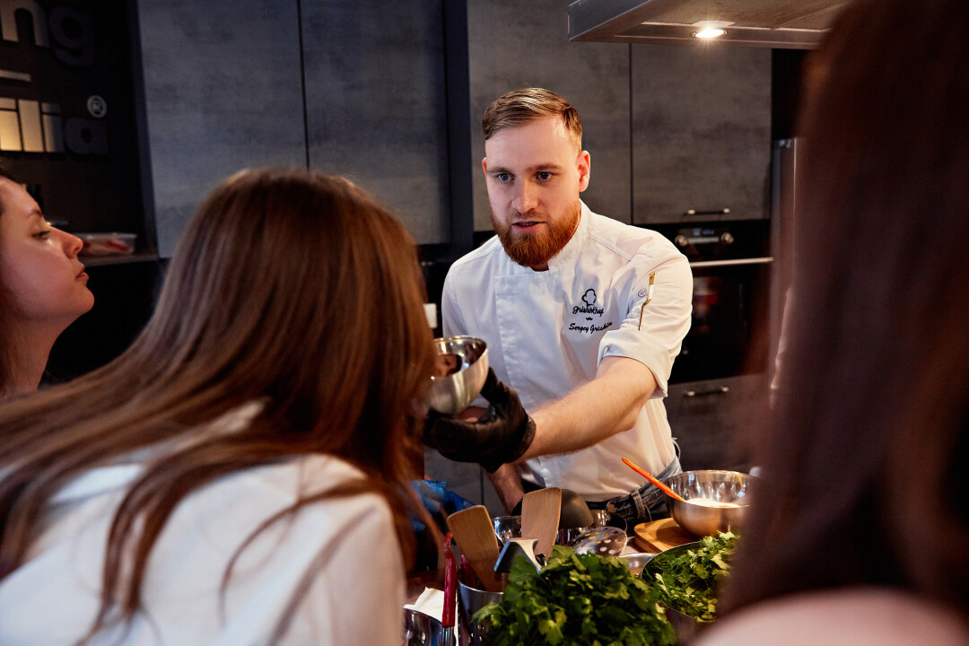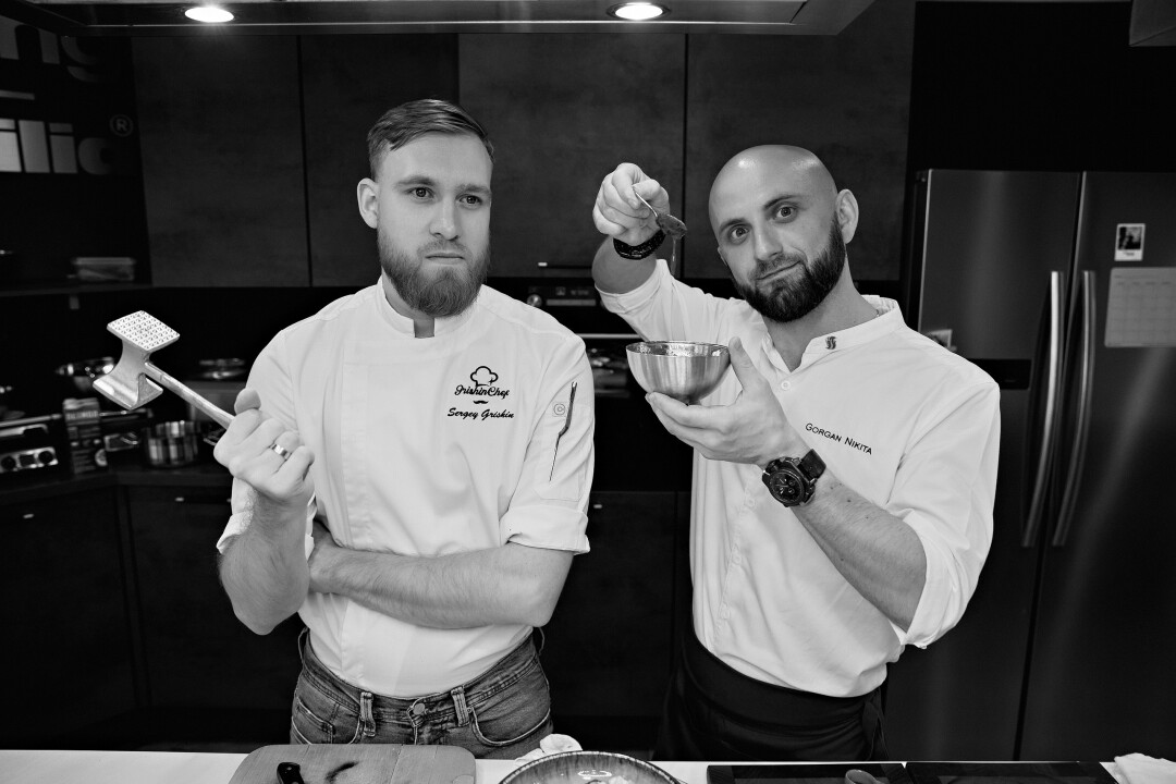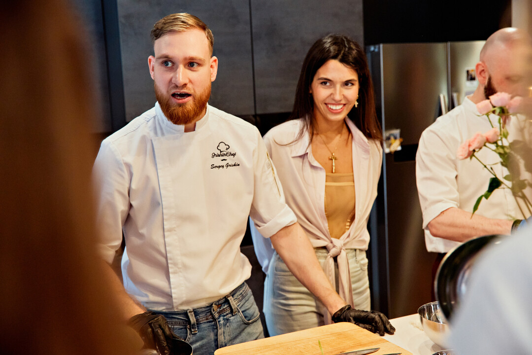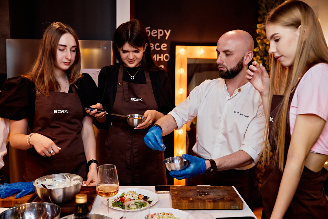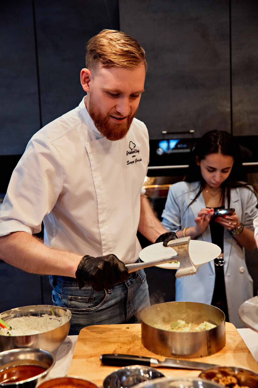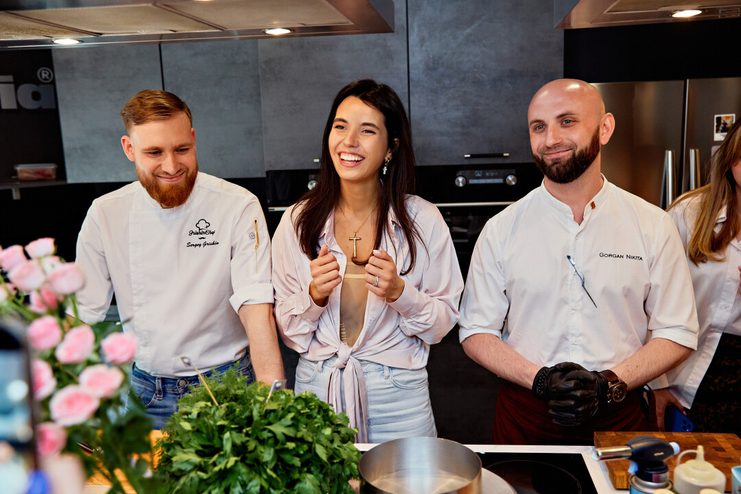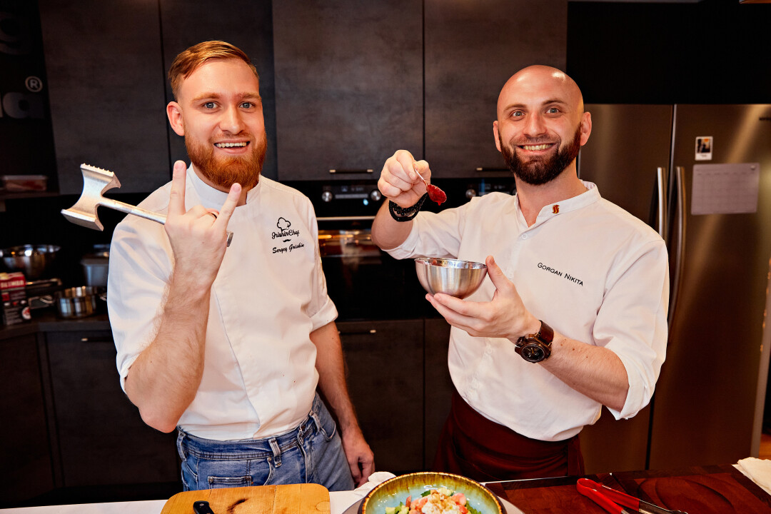 Еще один кулинарный мастер-класс проекта #ктонакухнехозяин от журнала «Сочи — Краснодар. Собака.ru» прошел в студии «Каре». Руководили процессом два шеф-повара Boroda Group — Никита Горган и Сергей Гришин. В окружении прекрасных девушек-участниц они приготовили три блюда из обновленного меню ресторана «Бородашвили Младший» и удивили всех присутствующих подачей. Самые активные гости получили подарки от партнера проекта — компании «Ключевское».