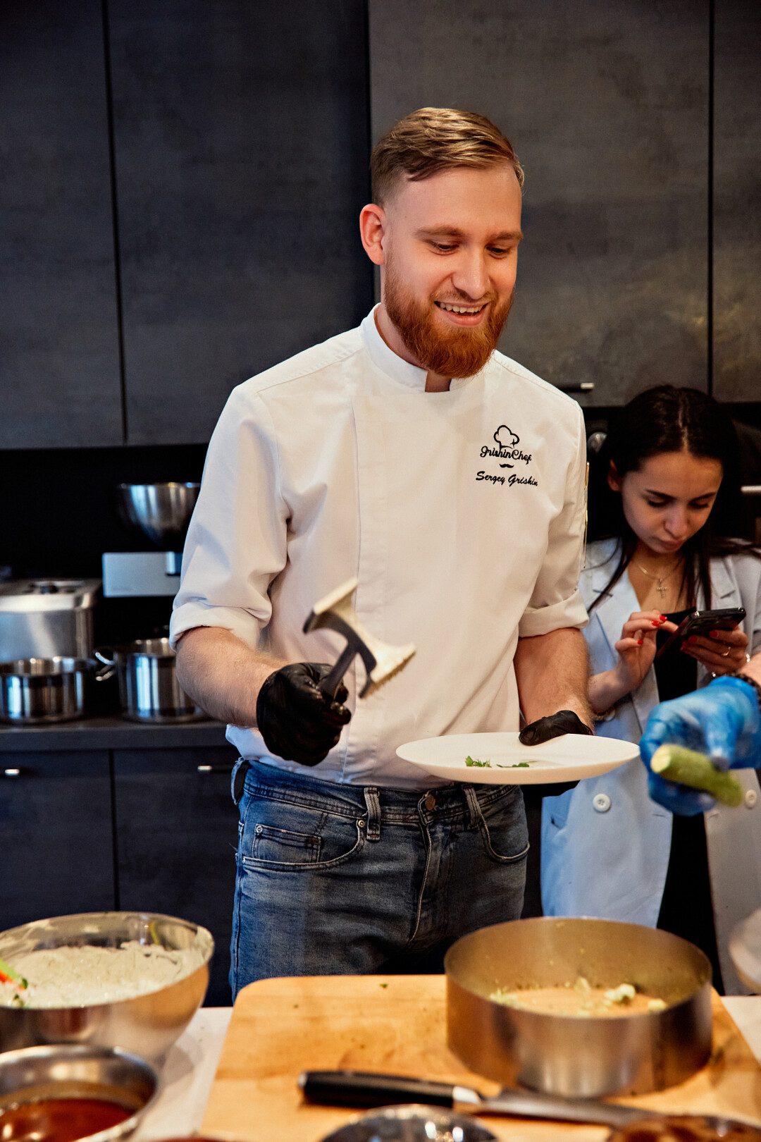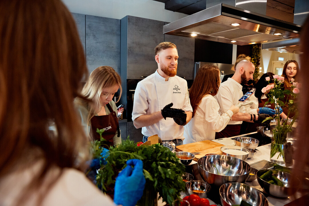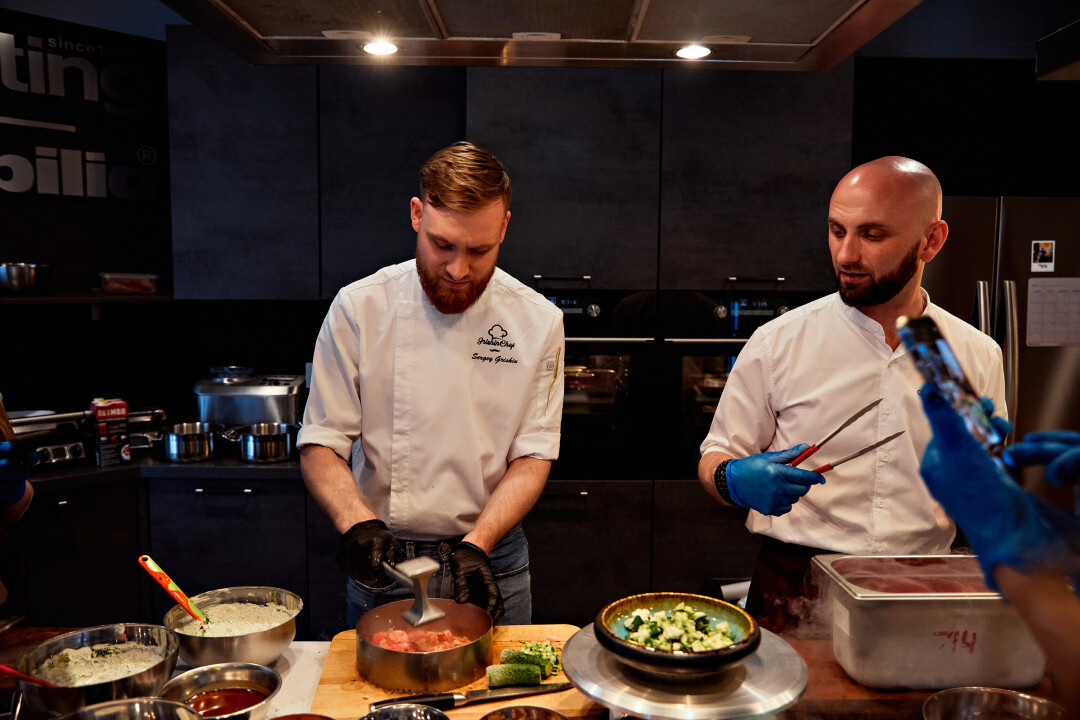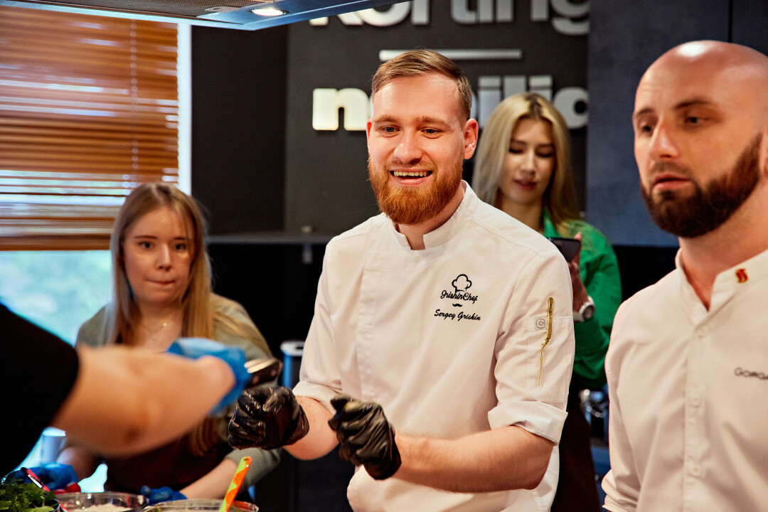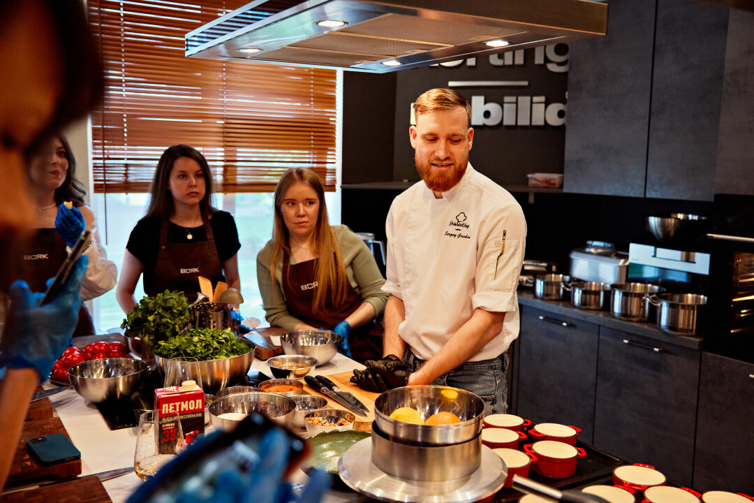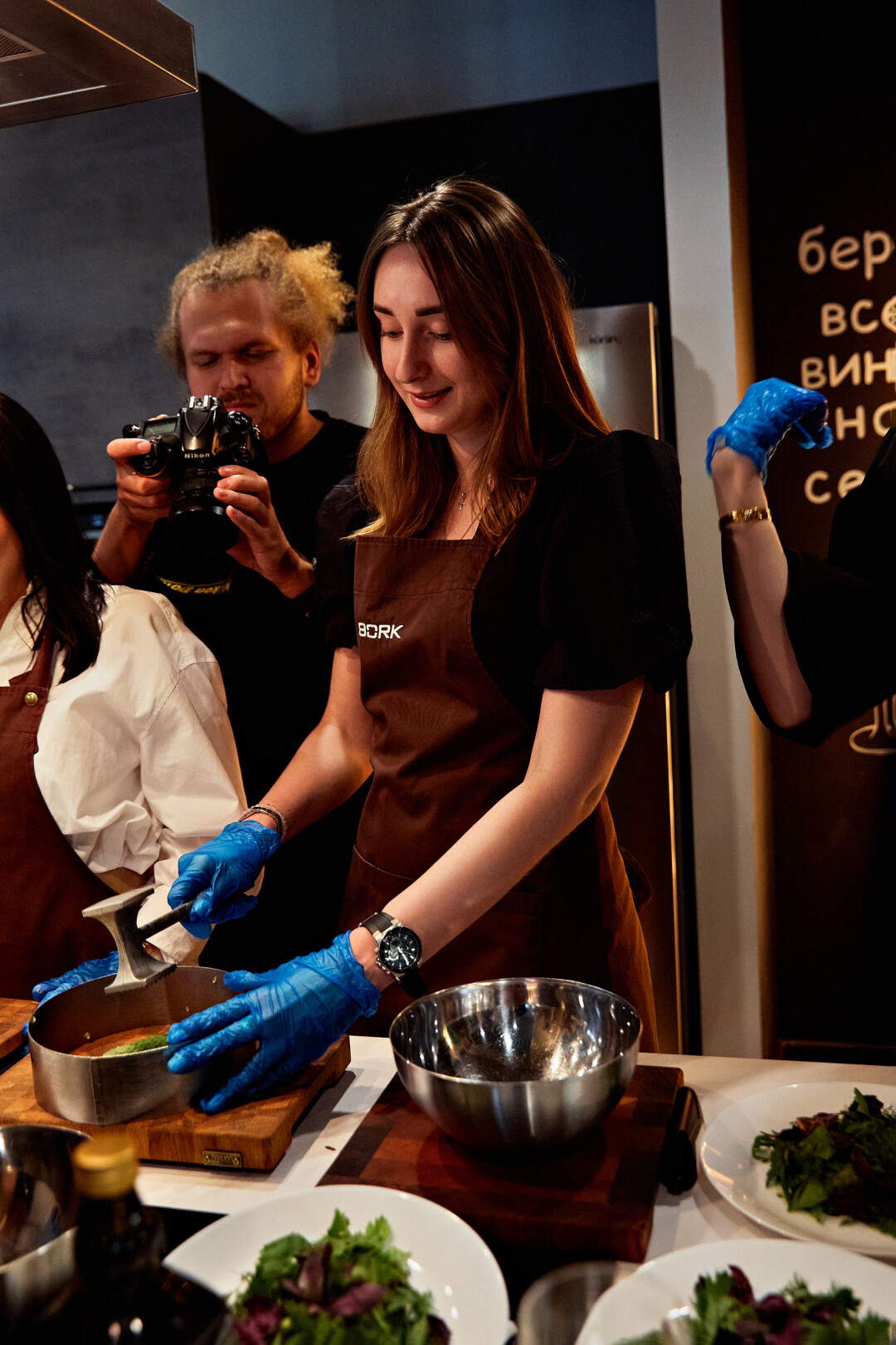 Еще один кулинарный мастер-класс проекта #ктонакухнехозяин от журнала «Сочи — Краснодар. Собака.ru» прошел в студии «Каре». Руководили процессом два шеф-повара Boroda Group — Никита Горган и Сергей Гришин. В окружении прекрасных девушек-участниц они приготовили три блюда из обновленного меню ресторана «Бородашвили Младший» и удивили всех присутствующих подачей. Самые активные гости получили подарки от партнера проекта — компании «Ключевское».