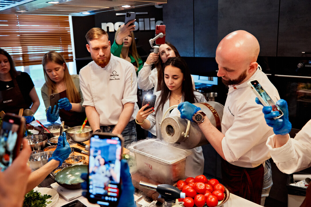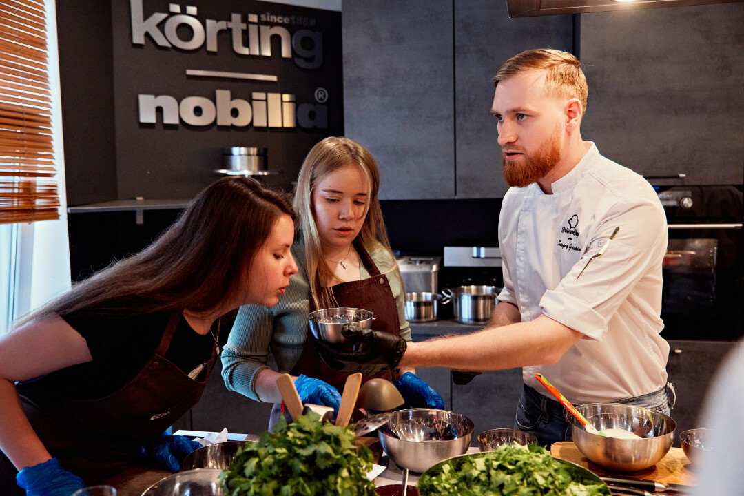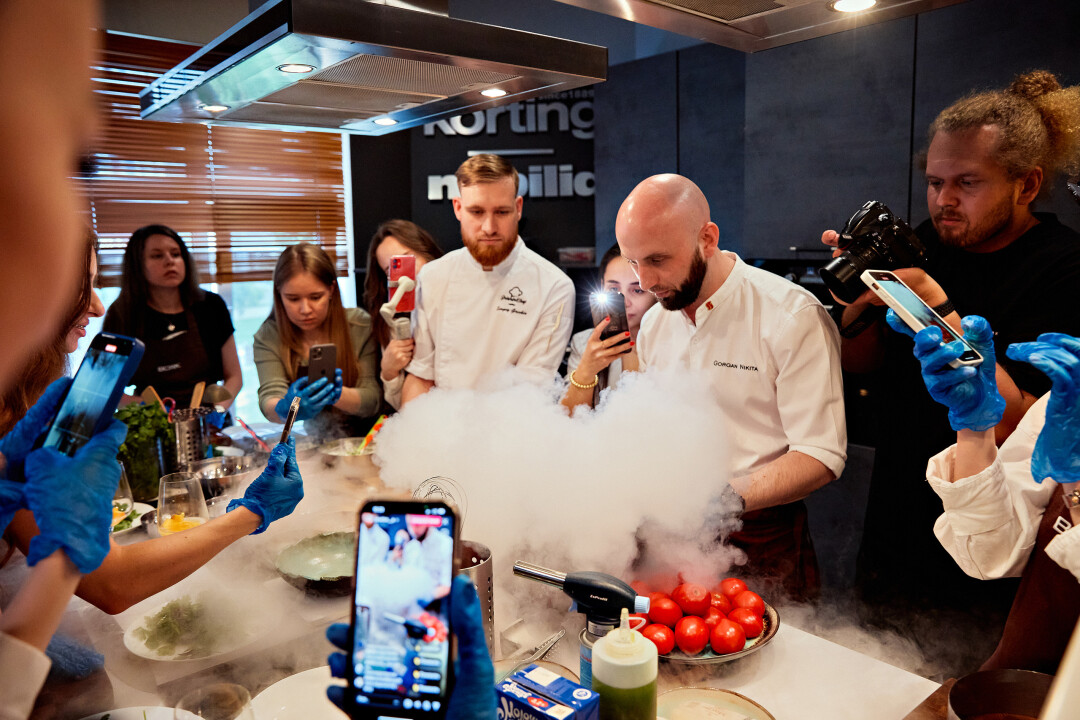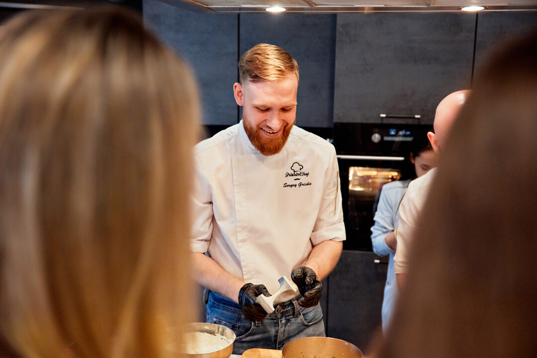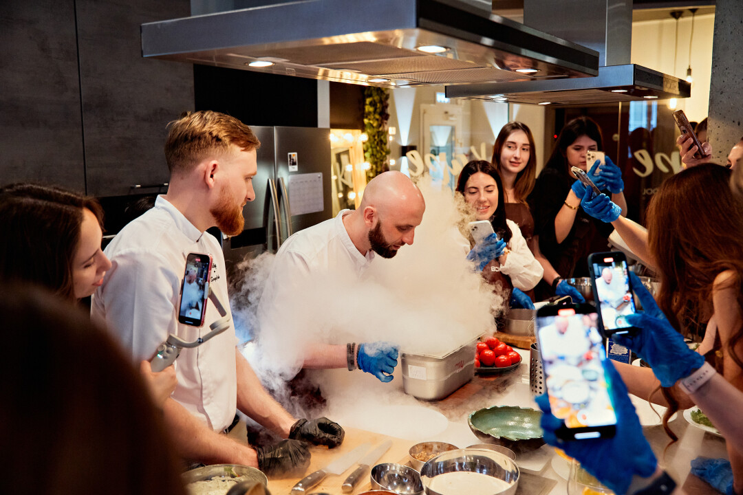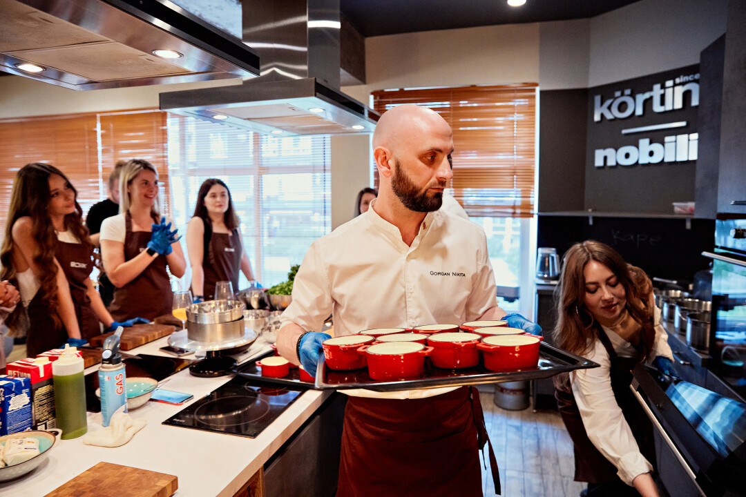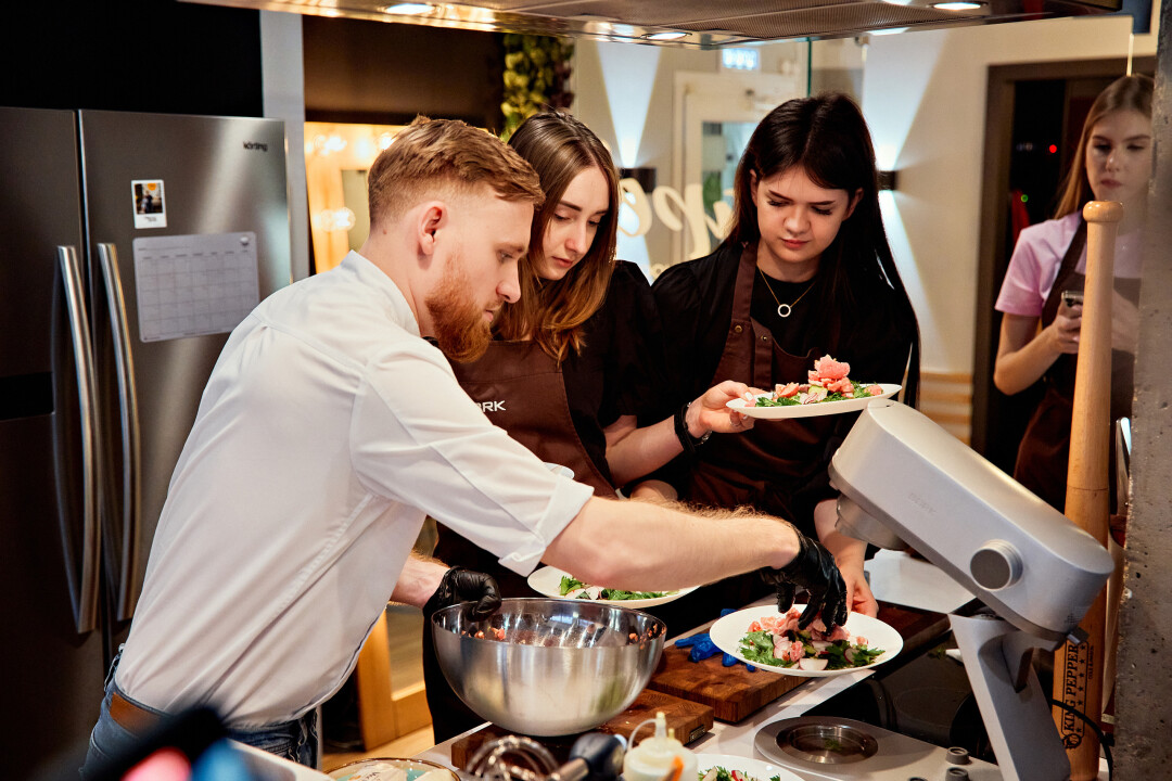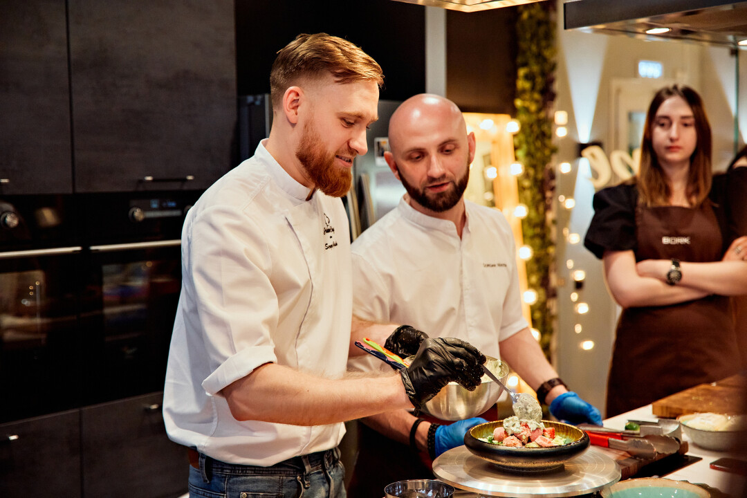 Еще один кулинарный мастер-класс проекта #ктонакухнехозяин от журнала «Сочи — Краснодар. Собака.ru» прошел в студии «Каре». Руководили процессом два шеф-повара Boroda Group — Никита Горган и Сергей Гришин. В окружении прекрасных девушек-участниц они приготовили три блюда из обновленного меню ресторана «Бородашвили Младший» и удивили всех присутствующих подачей. Самые активные гости получили подарки от партнера проекта — компании «Ключевское».