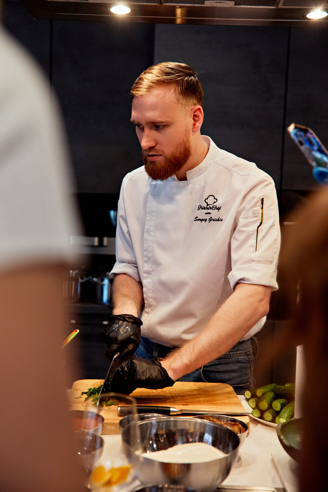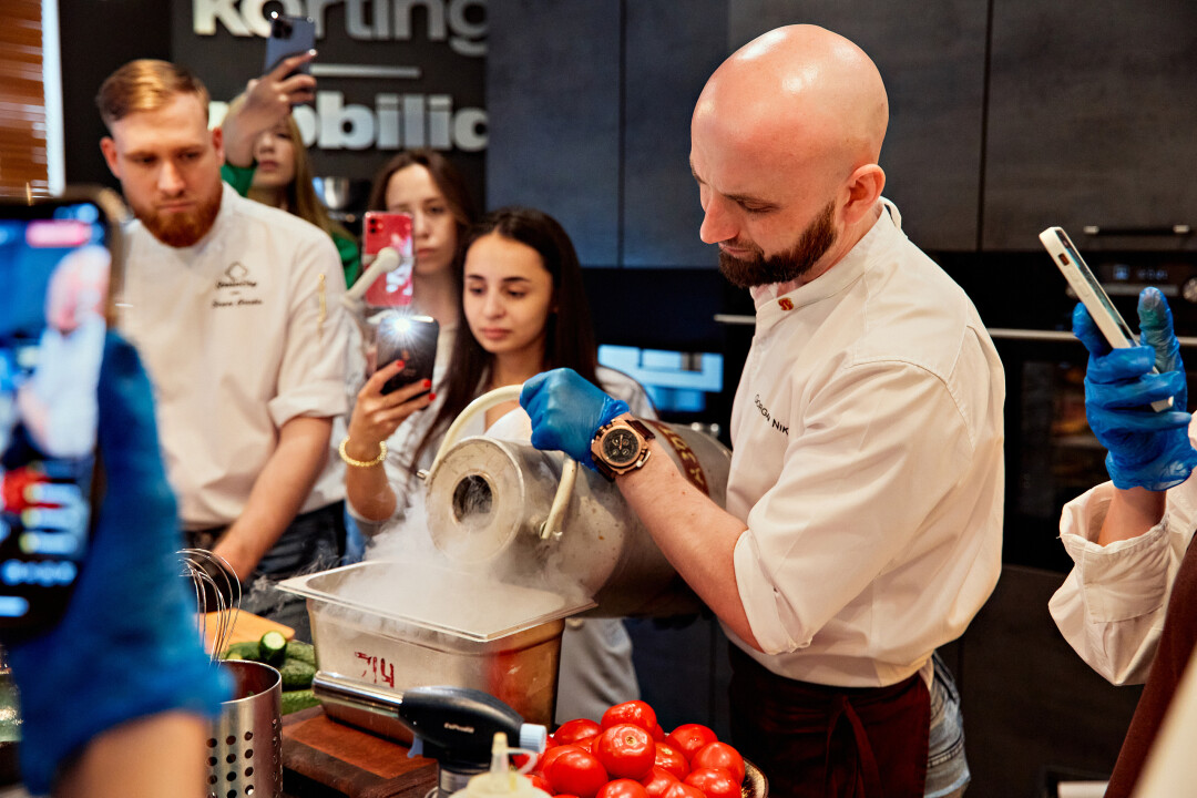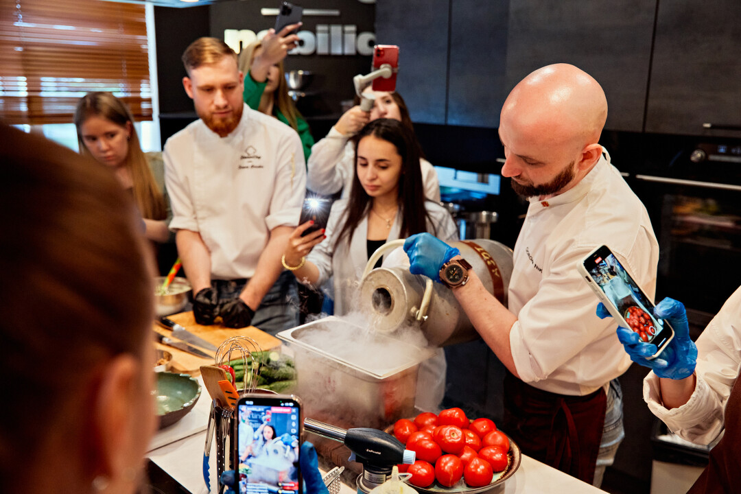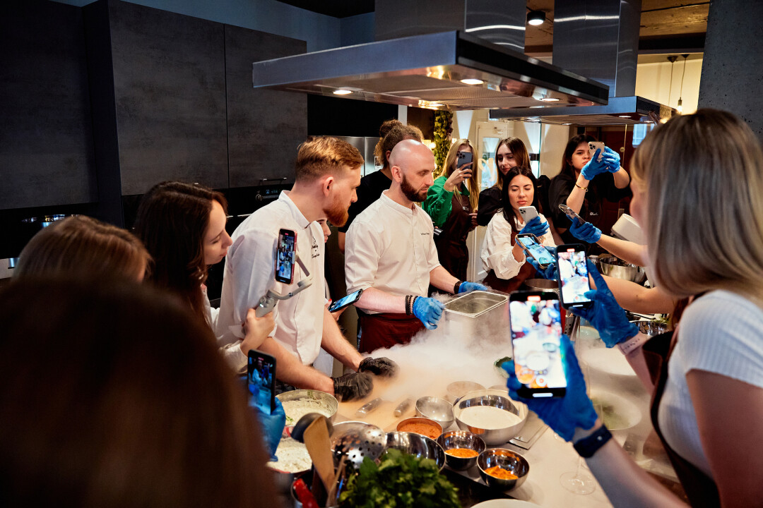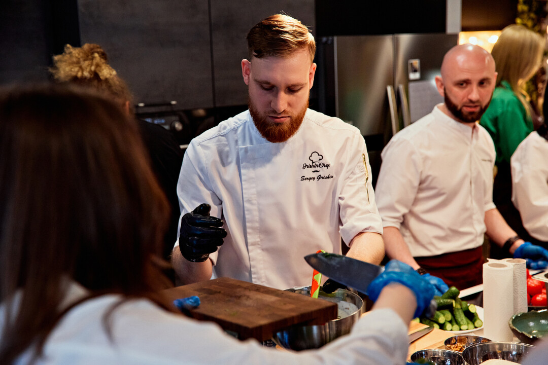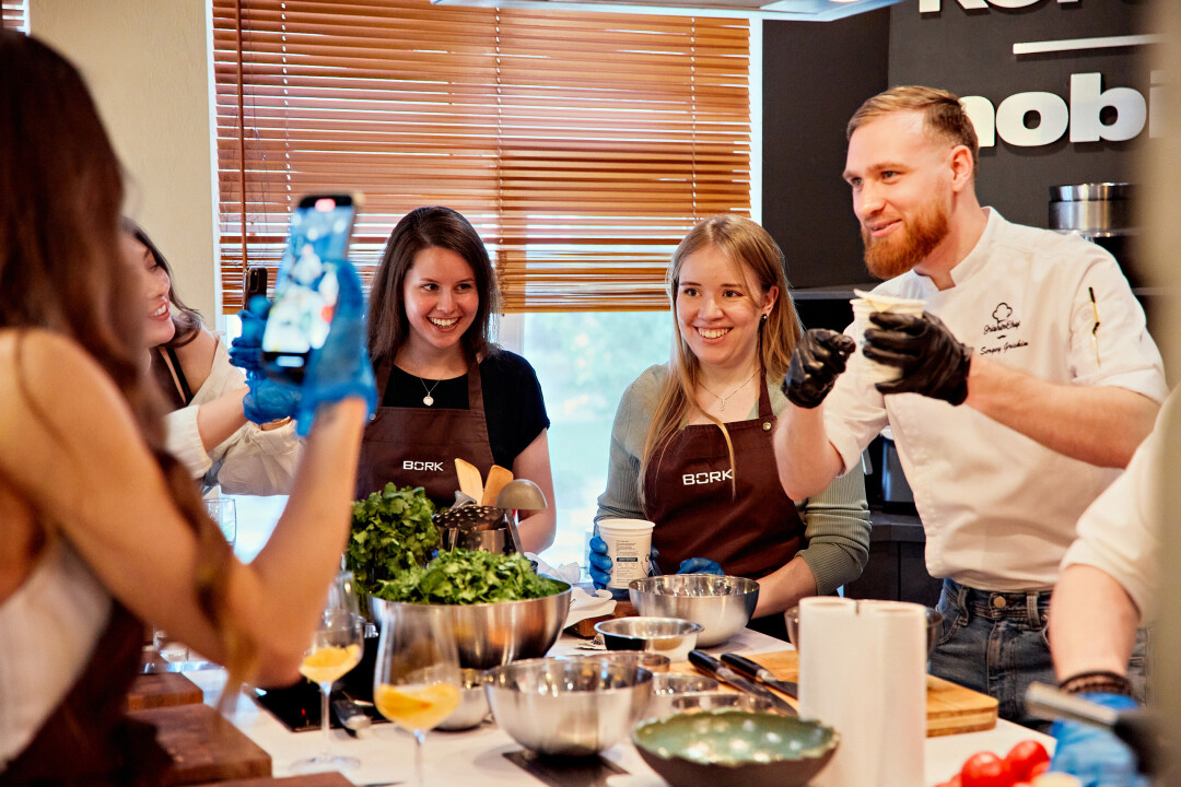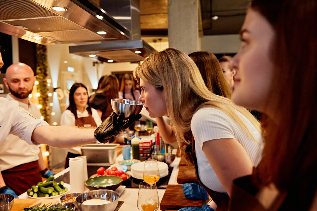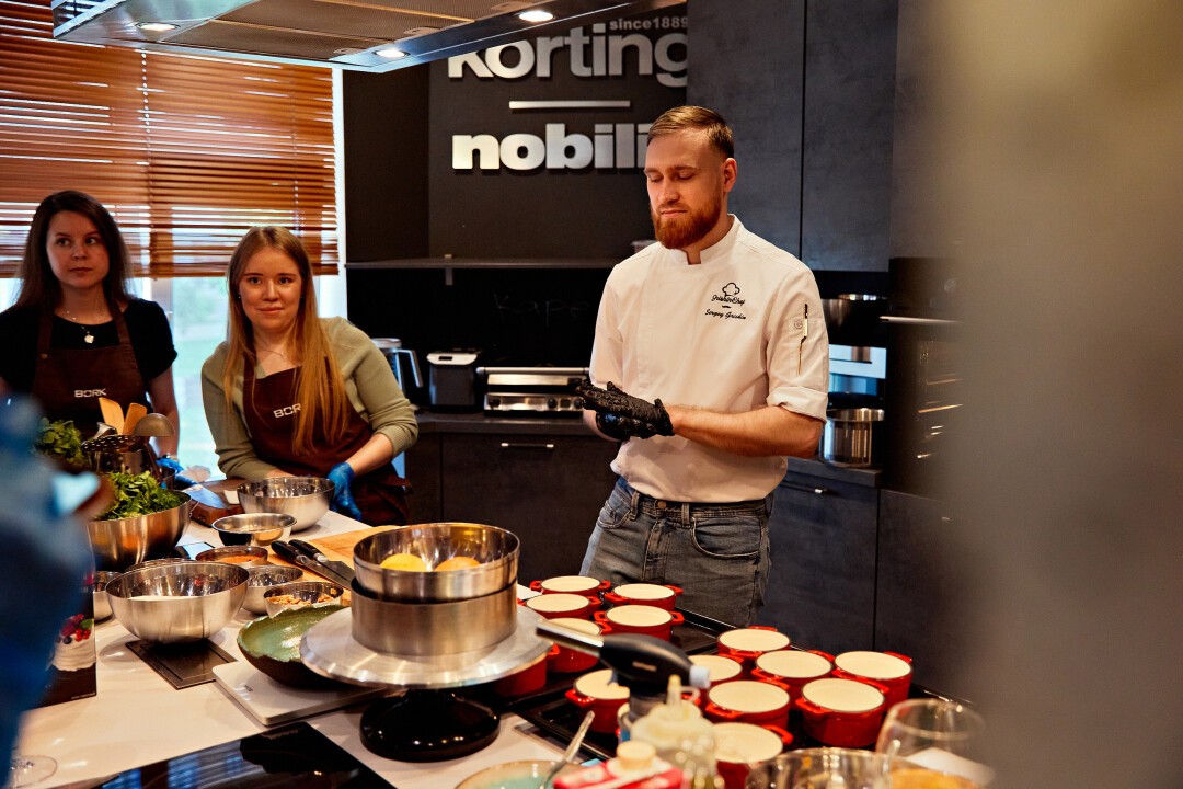 Еще один кулинарный мастер-класс проекта #ктонакухнехозяин от журнала «Сочи — Краснодар. Собака.ru» прошел в студии «Каре». Руководили процессом два шеф-повара Boroda Group — Никита Горган и Сергей Гришин. В окружении прекрасных девушек-участниц они приготовили три блюда из обновленного меню ресторана «Бородашвили Младший» и удивили всех присутствующих подачей. Самые активные гости получили подарки от партнера проекта — компании «Ключевское».