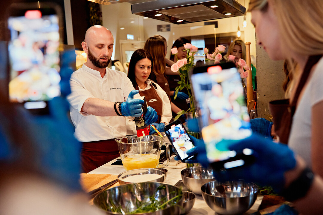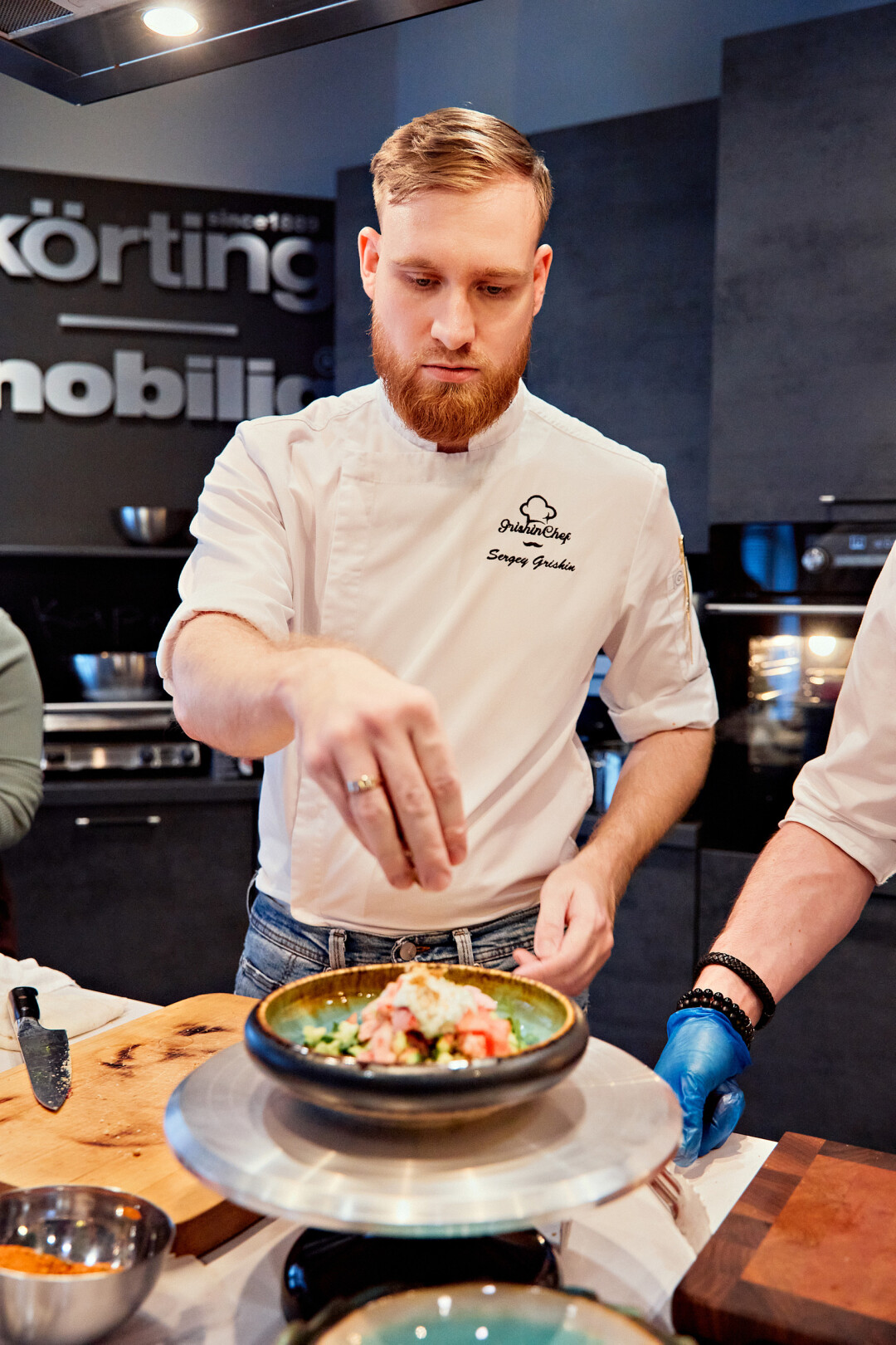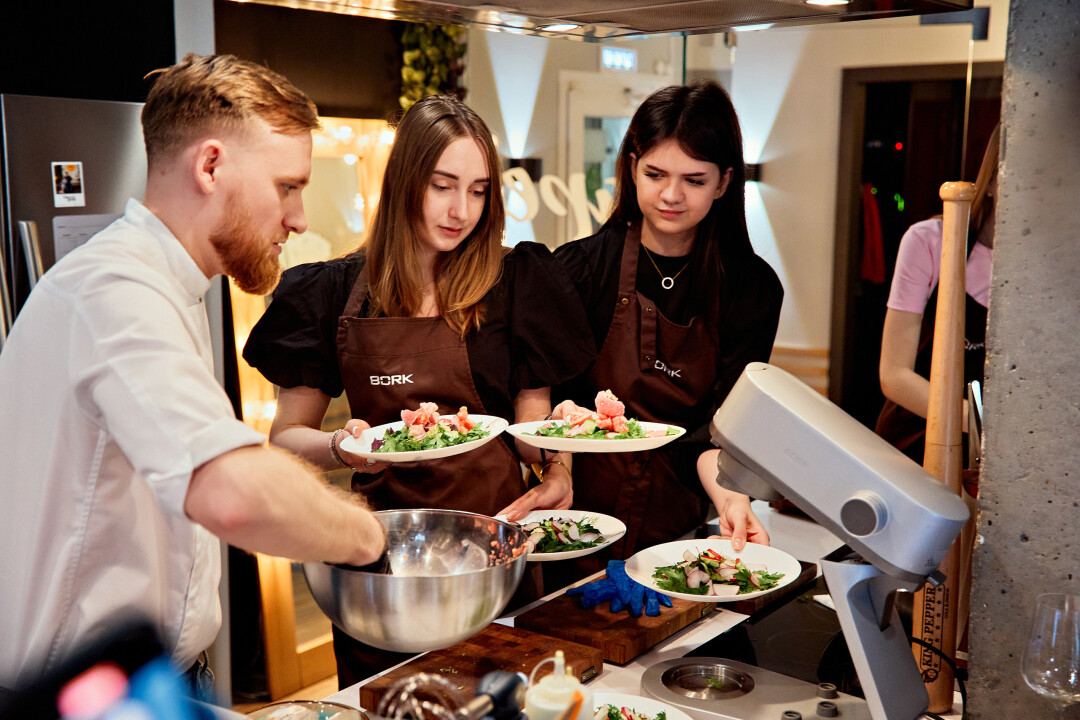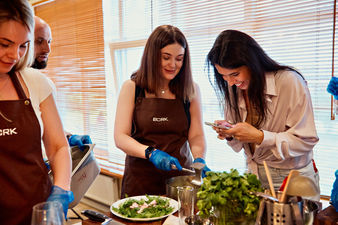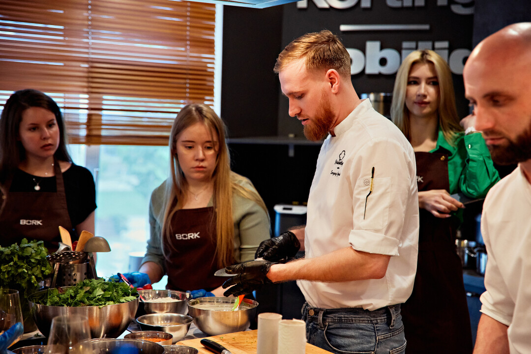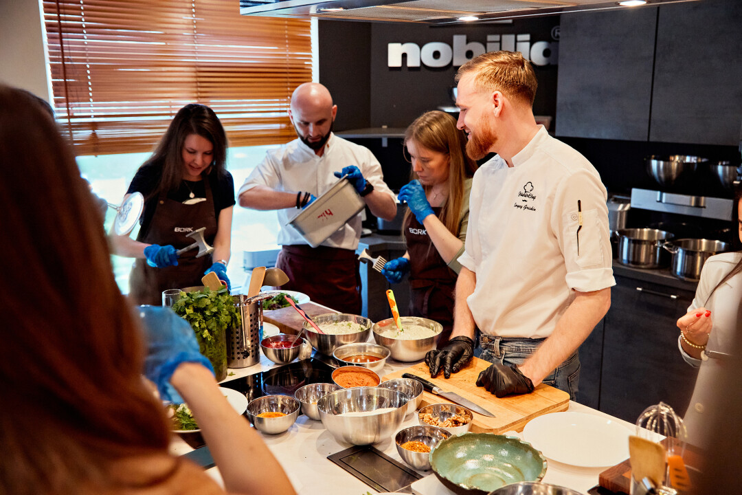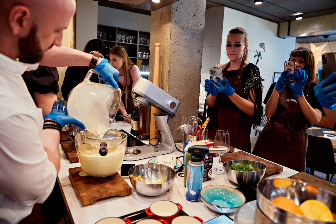 Еще один кулинарный мастер-класс проекта #ктонакухнехозяин от журнала «Сочи — Краснодар. Собака.ru» прошел в студии «Каре». Руководили процессом два шеф-повара Boroda Group — Никита Горган и Сергей Гришин. В окружении прекрасных девушек-участниц они приготовили три блюда из обновленного меню ресторана «Бородашвили Младший» и удивили всех присутствующих подачей. Самые активные гости получили подарки от партнера проекта — компании «Ключевское».